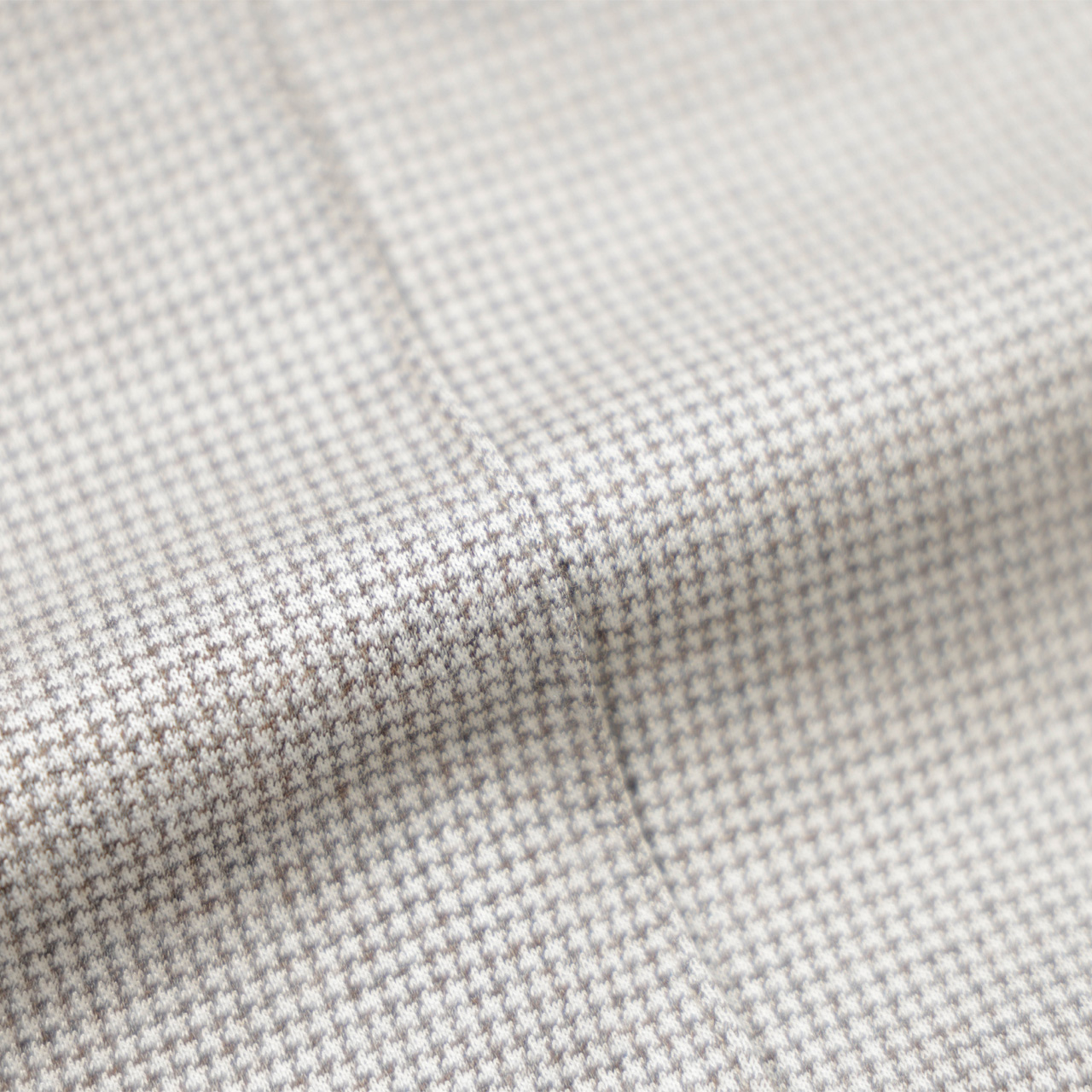 本モデルはシルクとコットンを混紡した生地を使用。滑らかな肌触りと上質なシルクの持つ光沢感が印象的。更に細かな千鳥格子柄で織り上げられ、スタイリングにアクセントを加えてくれます。