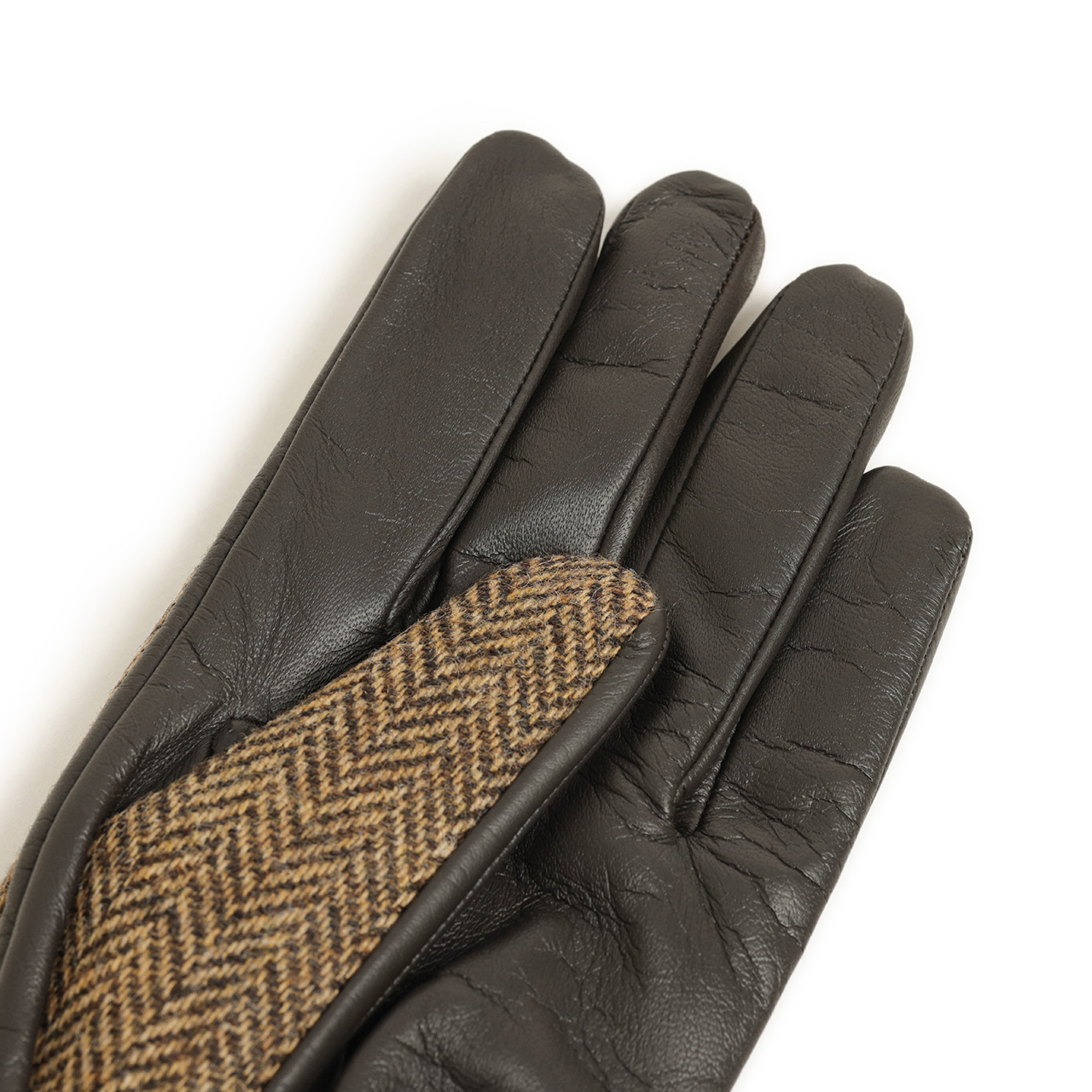 甲側はHOLLAND&SHERRYのツイード生地を使用。ツイードと言えばなヘリンボーン柄、Super 140'sメリノウールの滑らか、柔らかな生地感で手元にアクセントをプラスしつつ、ソフトなレザーのフィッティングの良さを損ないません。