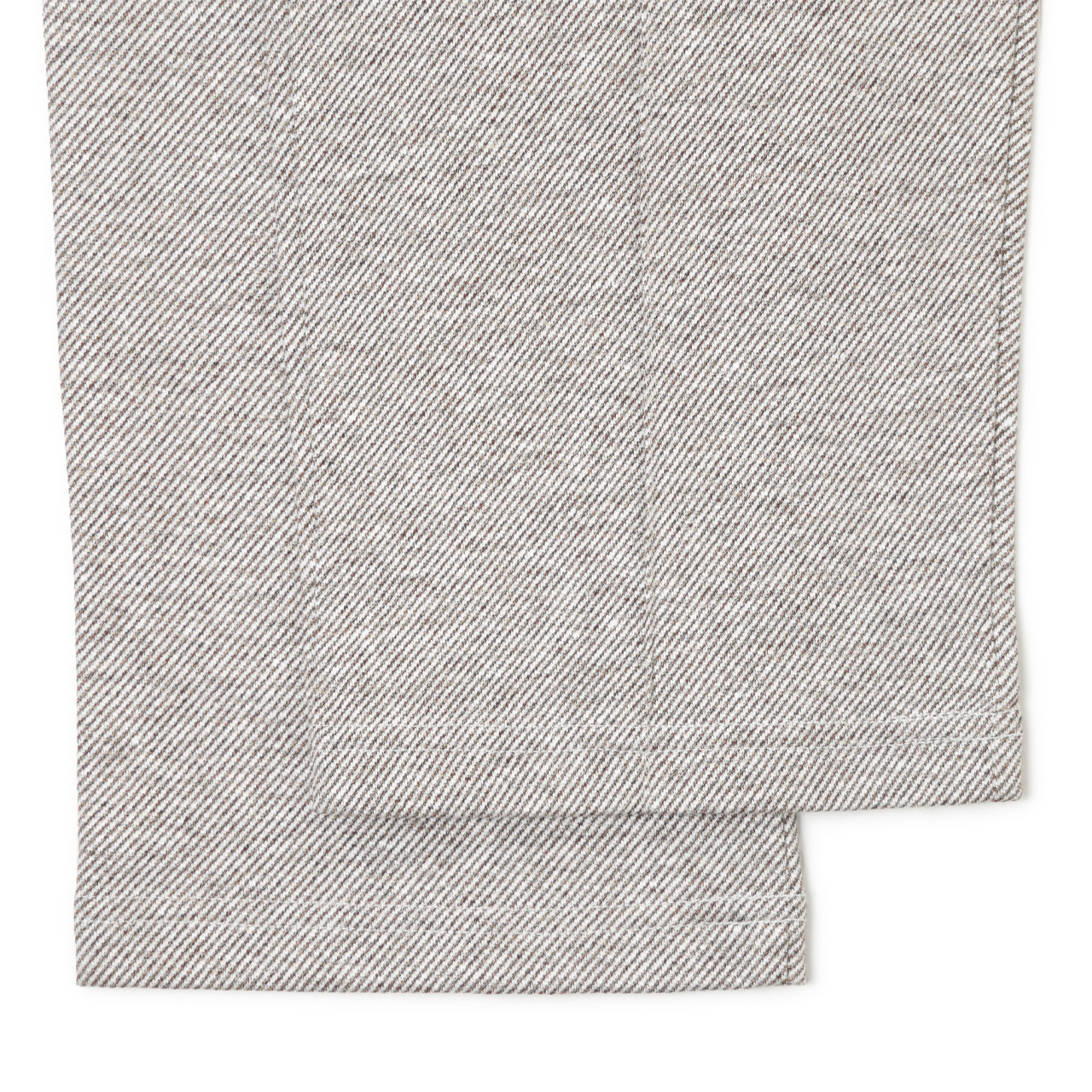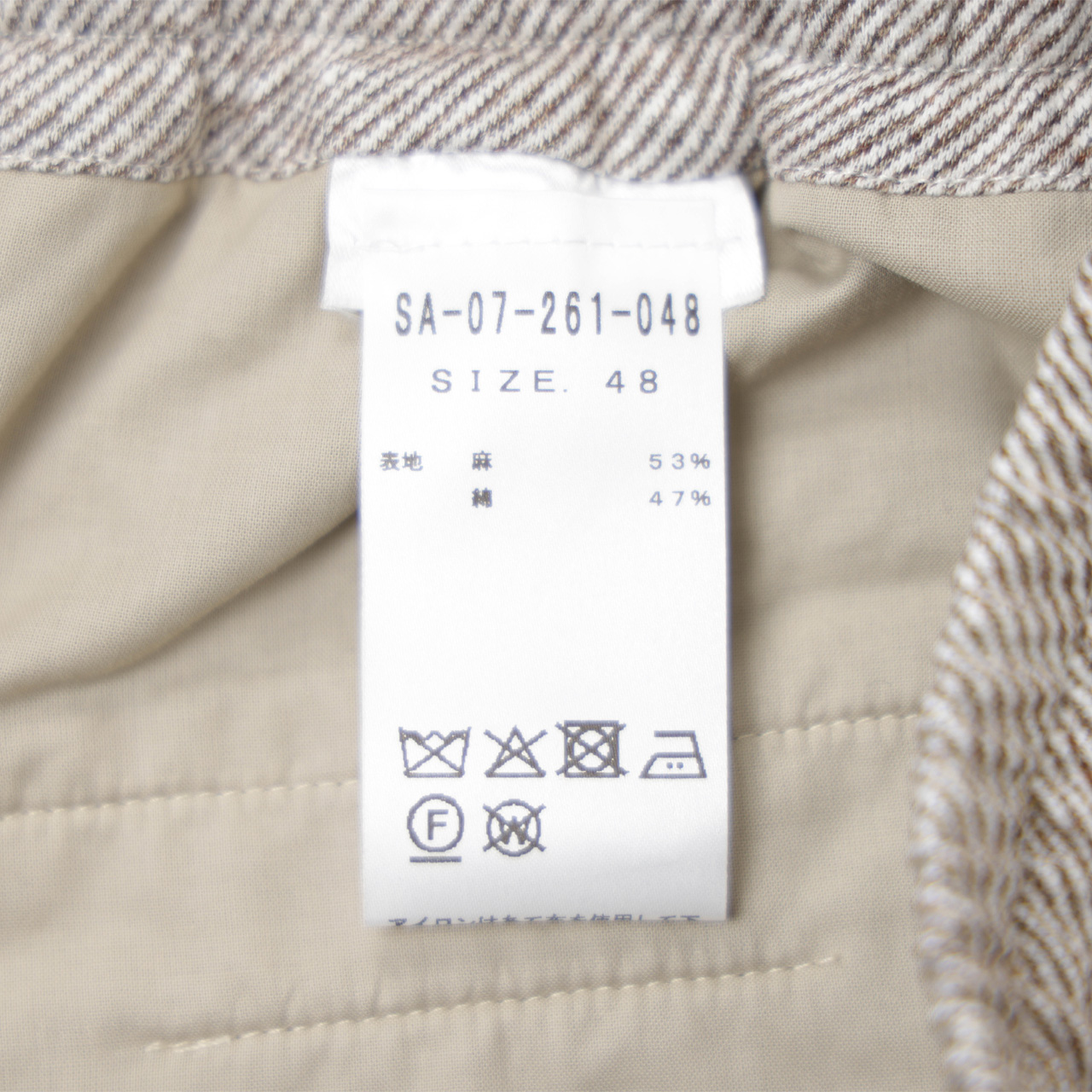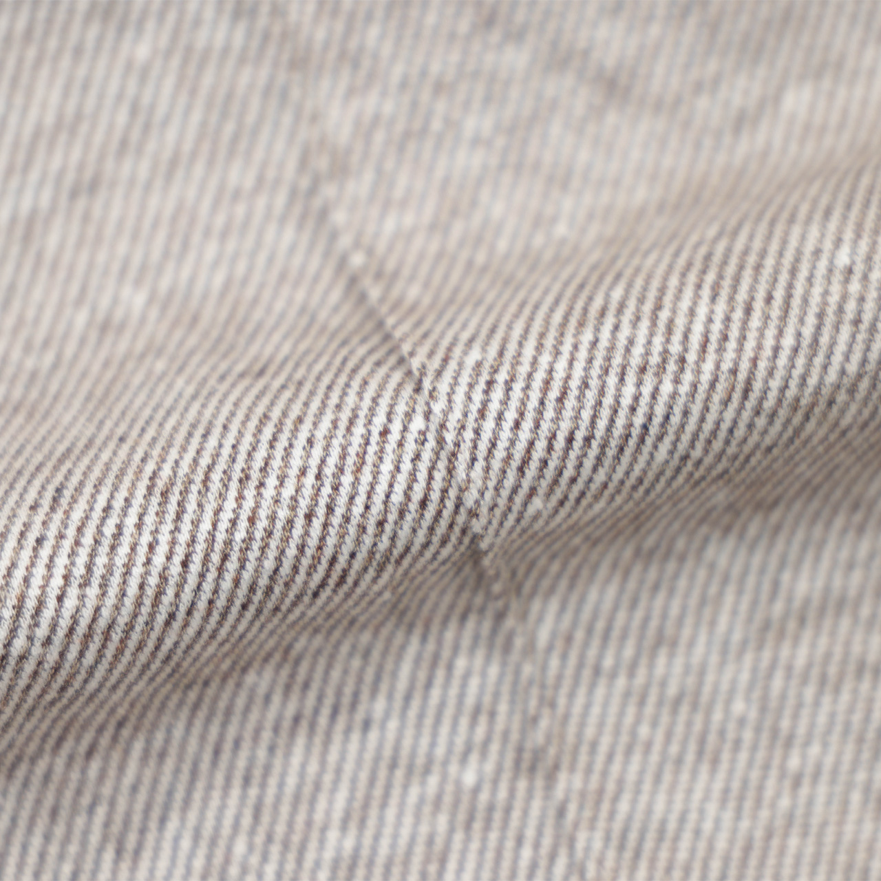 本モデルはリネンとコットンの混紡糸を使用した織柄が印象的な生地を使用。柔らかくサラッとした肌触りが感じられ、所々にあるリネンならではのネップの表情も印象的です。