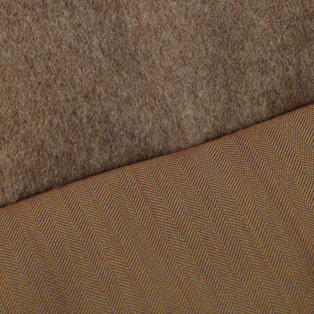 表面はベースにウール×ナイロンのソラーロ生地を使用。角度によって変わる風合い、細かなピッチのヘリンボーン柄がソラーロのこの独特な風合いを引き立たせます。