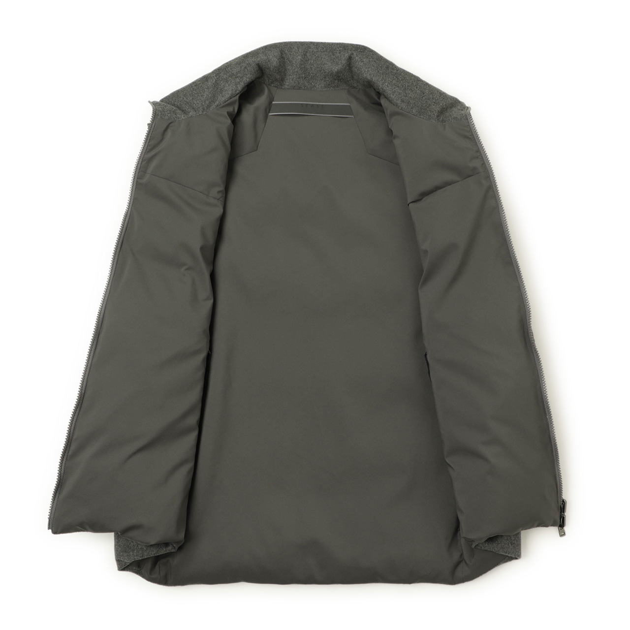 こちらはSEASEらしい素材使いが光るダウンベスト。リバーシブルでお使いいただける一着となっております。