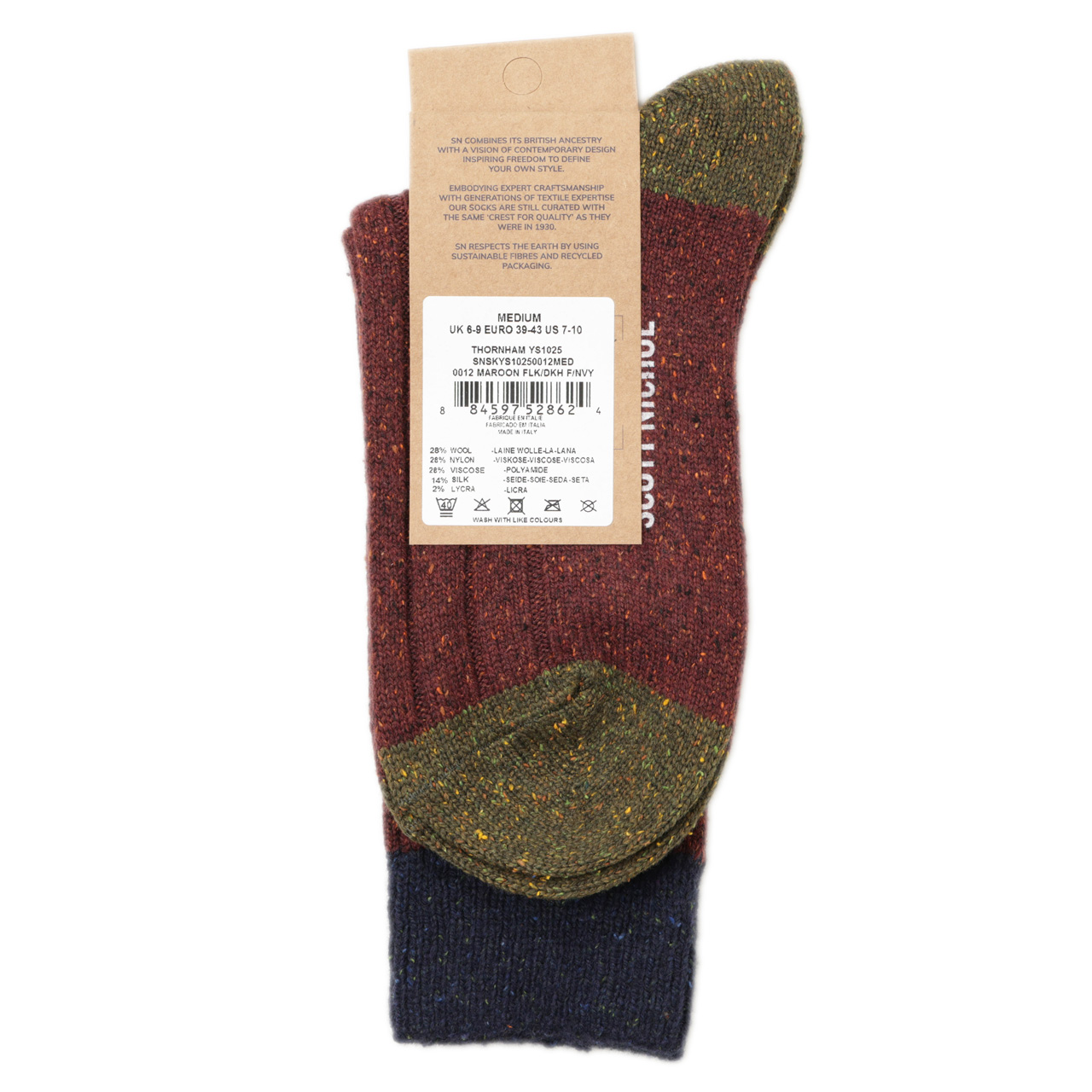 PANTHERELLA パンセレラ メンズ ソックス レギュラー リブ 切り替え メランジ メリノウール シルク YS1025 SCOTT NICHOL MAROON FLECK/ボルドー