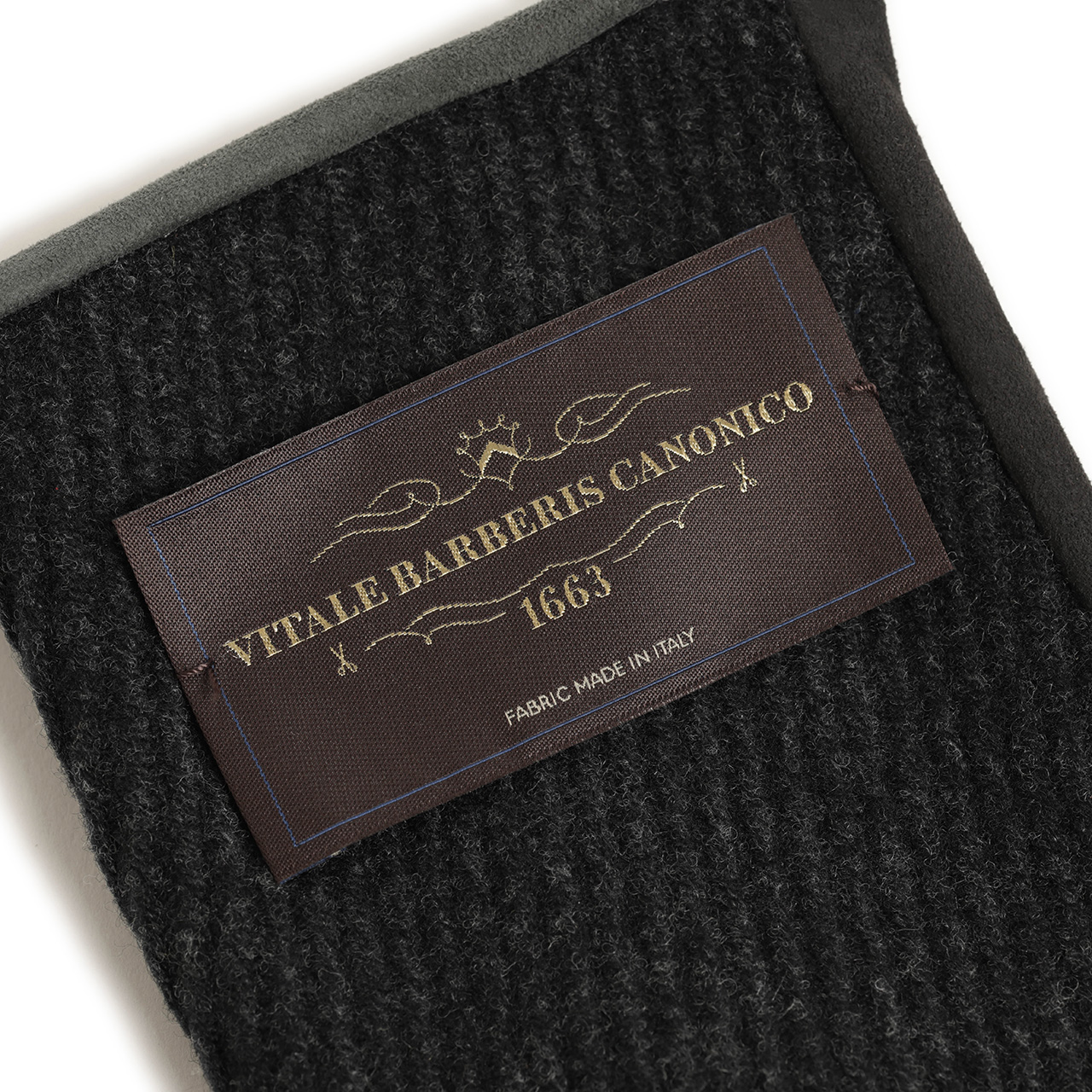 甲側はVITALE BARBERIS CANONICOのウールフランネル生地を使用。織柄の入った立体感のある生地は、シンプルなカラーリングながらさりげなく手元にアクセントをプラスしてくれます。