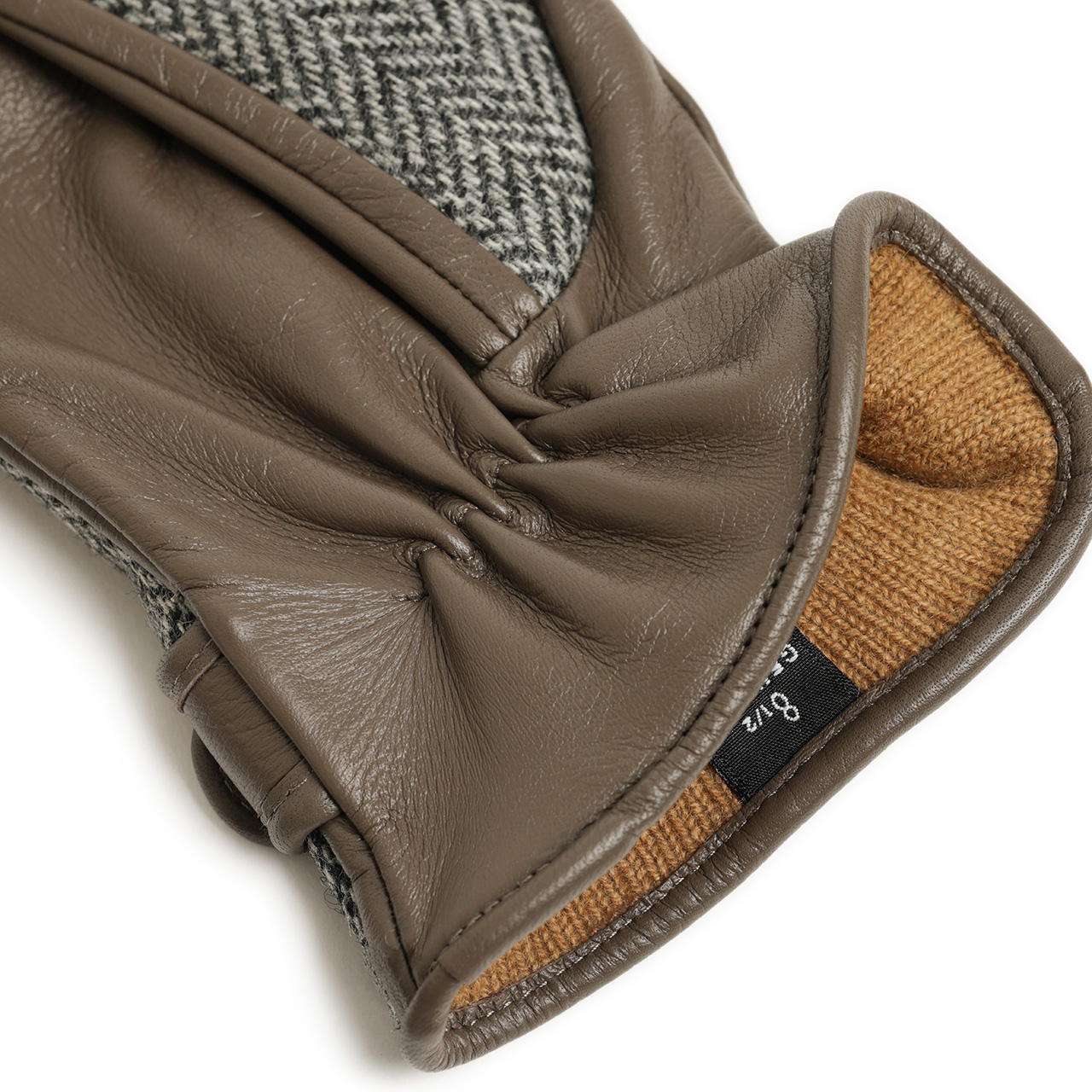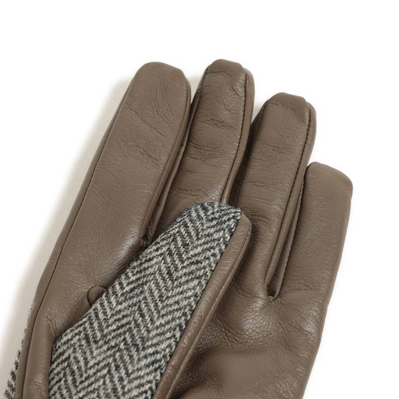 甲側はHOLLAND&SHERRYのツイード生地を使用。ツイードと言えばなヘリンボーン柄、Super 140'sメリノウールの滑らか、柔らかな生地感で手元にアクセントをプラスしつつ、ソフトなレザーのフィッティングの良さを損ないません。