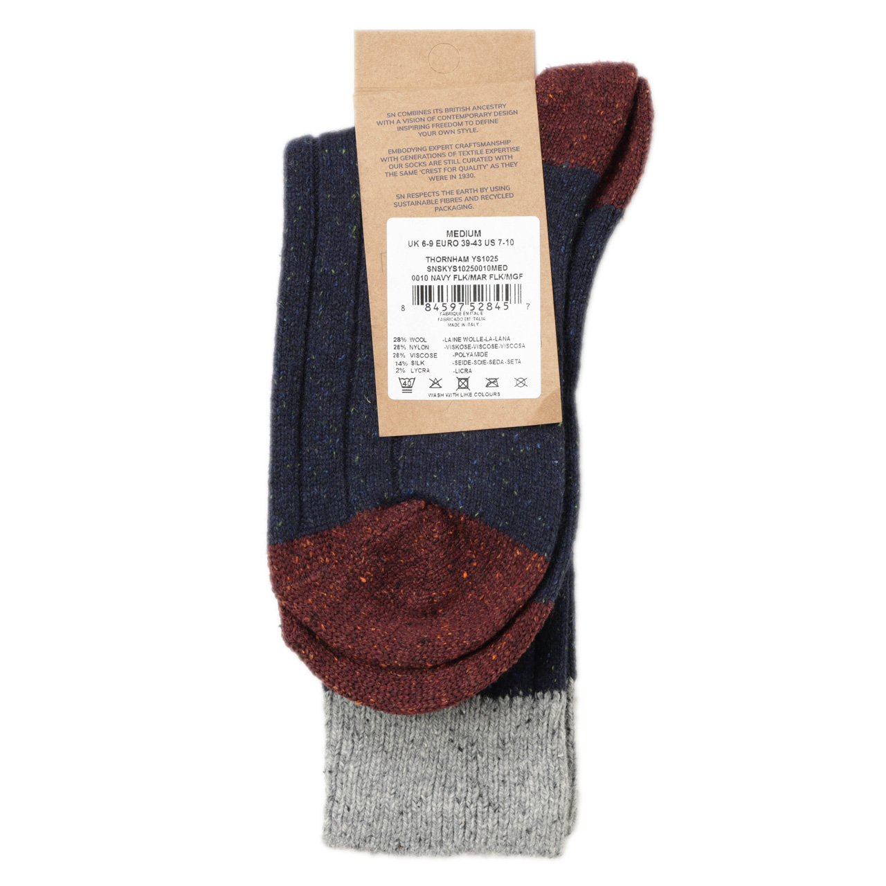 PANTHERELLA パンセレラ メンズ ソックス レギュラー リブ 切り替え メランジ メリノウール シルク YS1025 SCOTT NICHOL NAVY FLECK/ネイビー