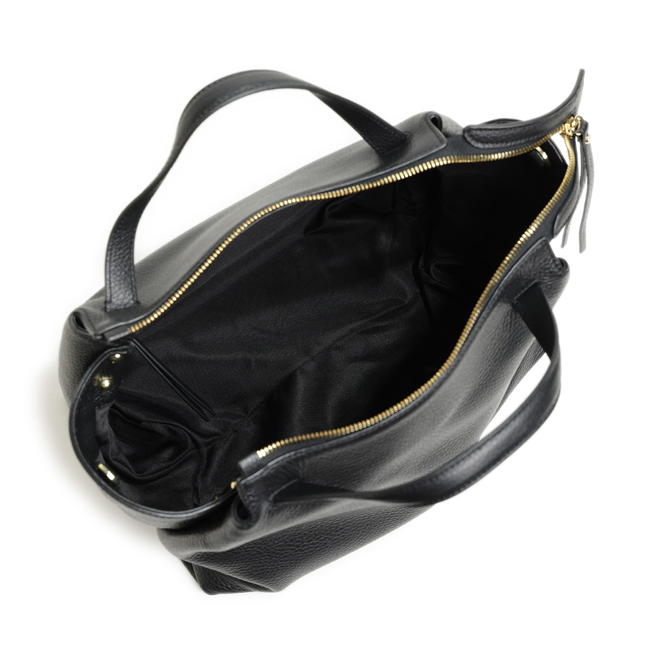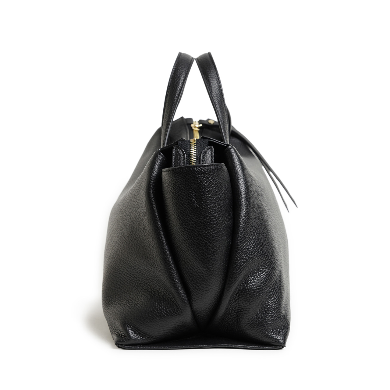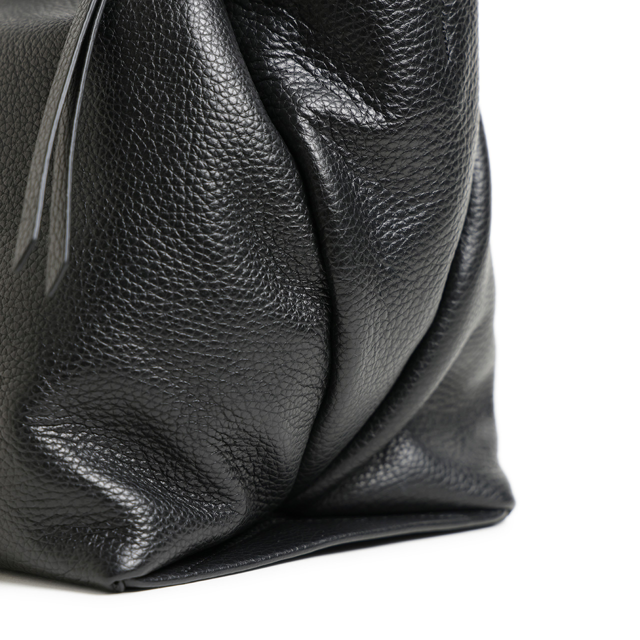 ソフトで軽量な大き目のシボの表情が印象的なレザーをデリケートな薄い紙の様に折り畳み曲線的なラインを描き出しています。この曲線の柔らかなシルエットが日常使いにピッタリです。