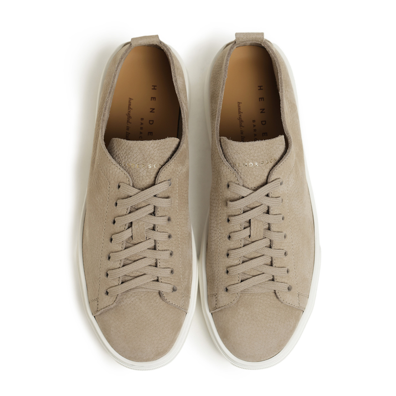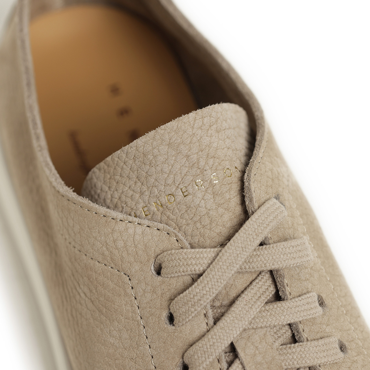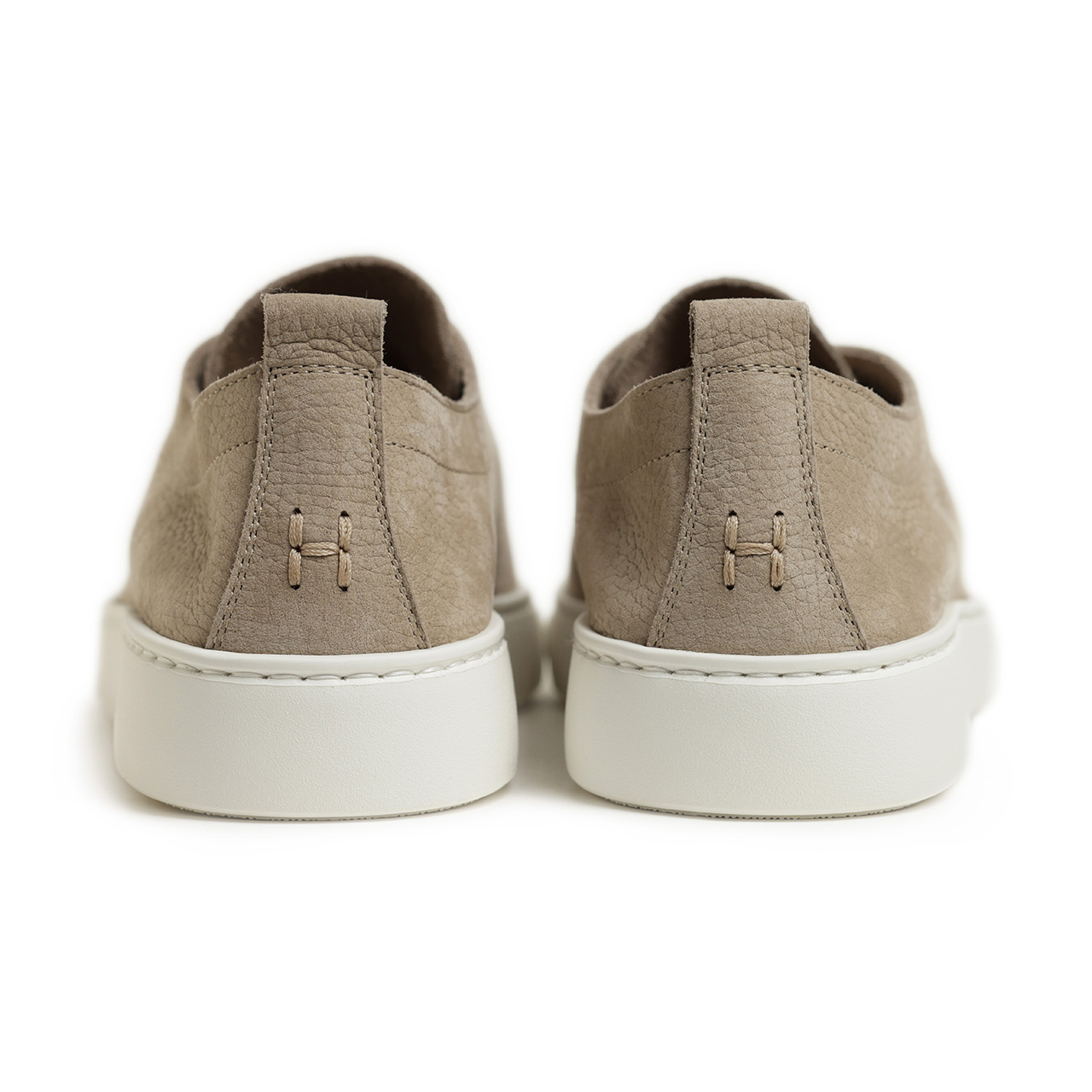 アッパーにはヌバックを使用。表革にバフ掛けをして仕上げるヌバックレザーですが、シボ革としてそのまま使用している定番のきめ細かくソフトなレザーをベースとしていますので、もちろんこちらのアッパーも非常にソフトで足馴染みの良さを感じます。