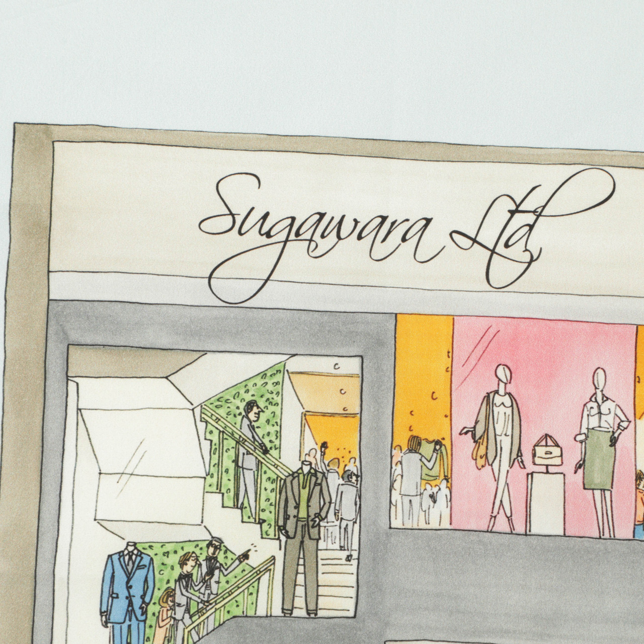今季は弊社仙台店のリニューアルオープンに合わせて作成した菅原靴店完全別注デザインの一枚が登場!イラストレーターの遠山晃司氏が手掛けた菅原靴店本店のイラストをサックスブルーのベースに配置し、オレンジカラーのパイピングを施しました。