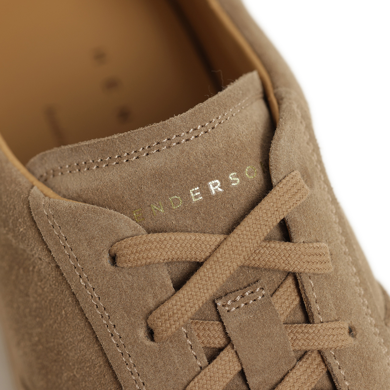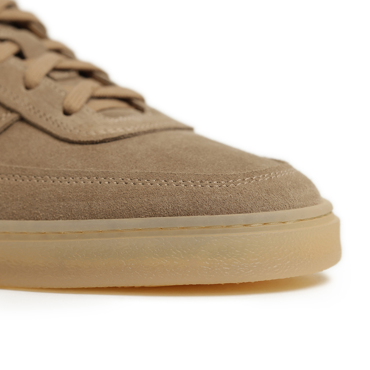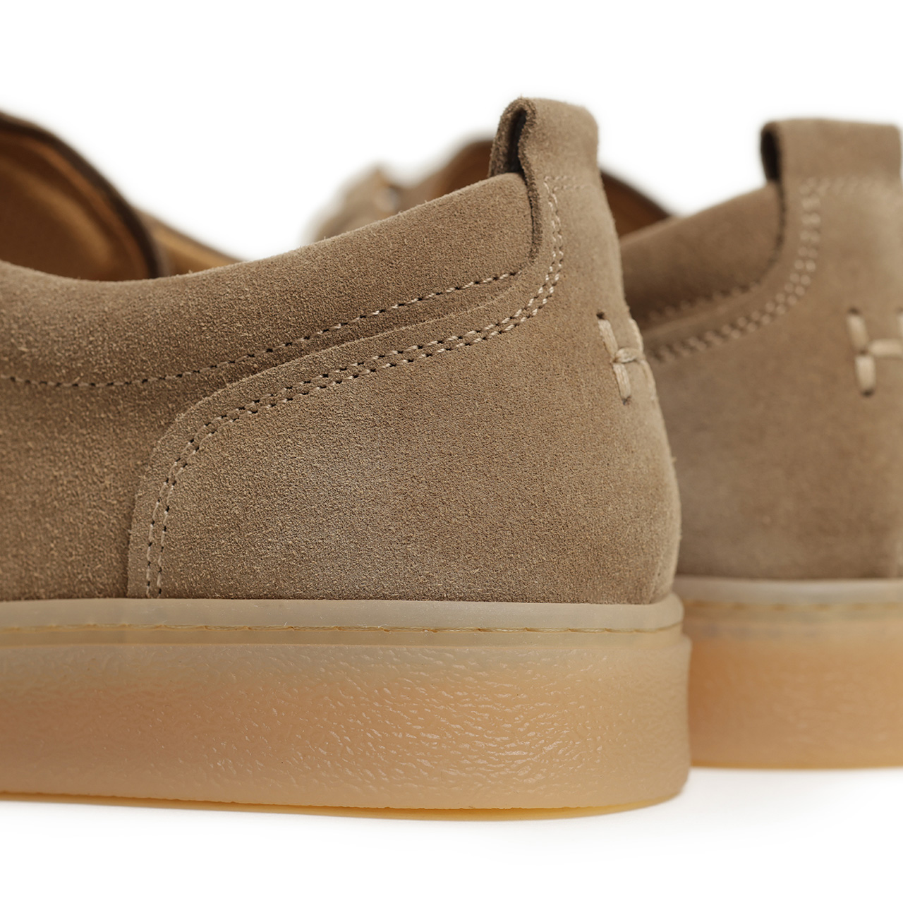 レザーとスエードで切り替えるオリジナルのデザインに対して、本モデルはベージュのスエードワントーンで構成。落ち着いた色味とスエードの起毛感で、子供っぽくならない、大人の男性が履くにふさわしい品の良さを纏わせました。