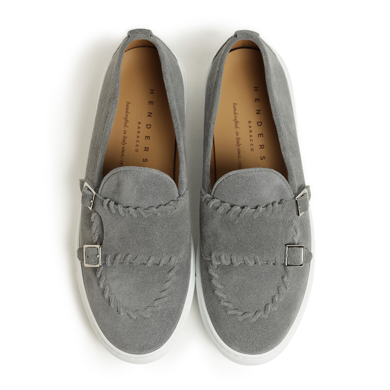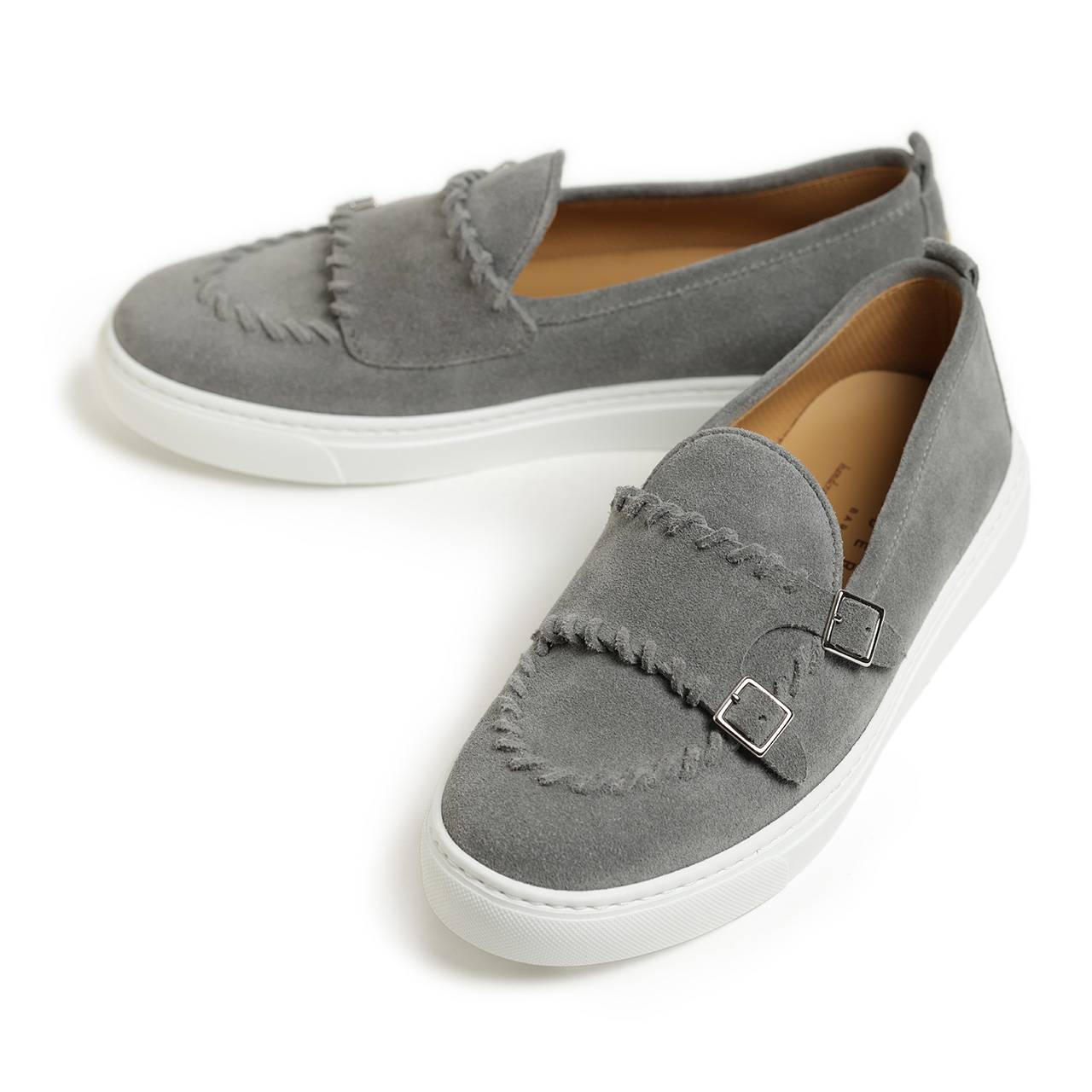 レディースシューズでは珍しい印象もあるモンクストラップを採用した一足。手作業によって施されたモンク部分のパイピング、モカ部分のステッチングが印象的なデザインに仕上がっております。