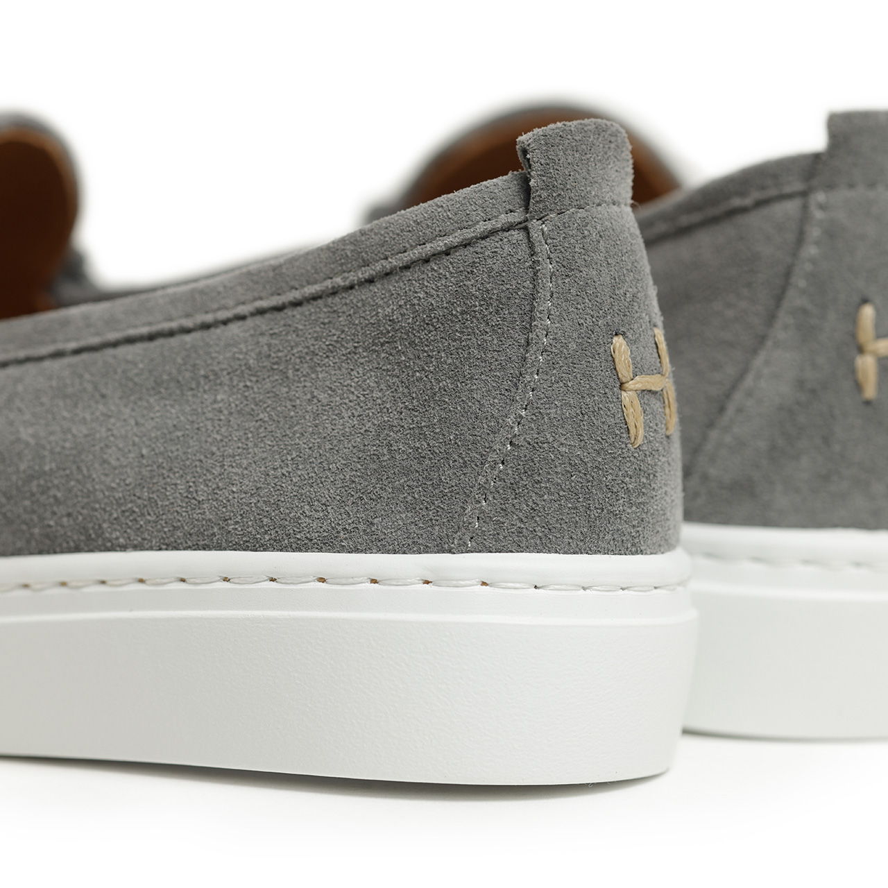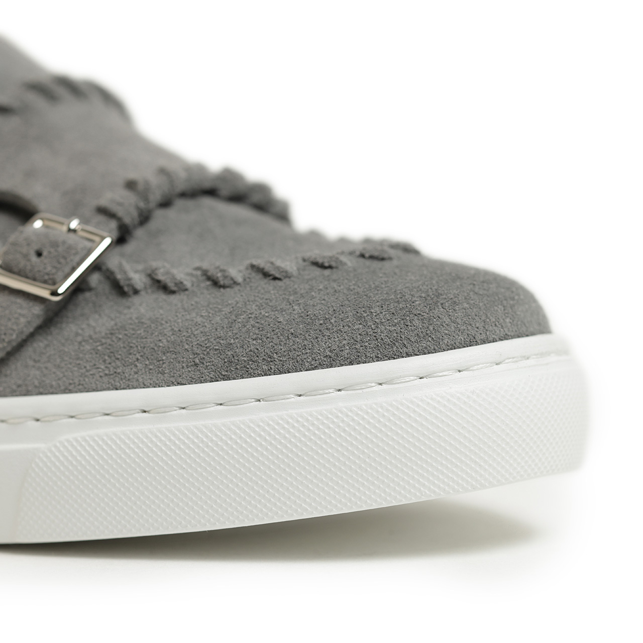 アッパーにはきめの細かなスエードを使用。明るめトーンのグレーが足元を軽快に彩り、ホワイトよりも落ち着いた印象を見せてくれるので大人のカジュアルスタイルにピッタリな一足ではないでしょうか。