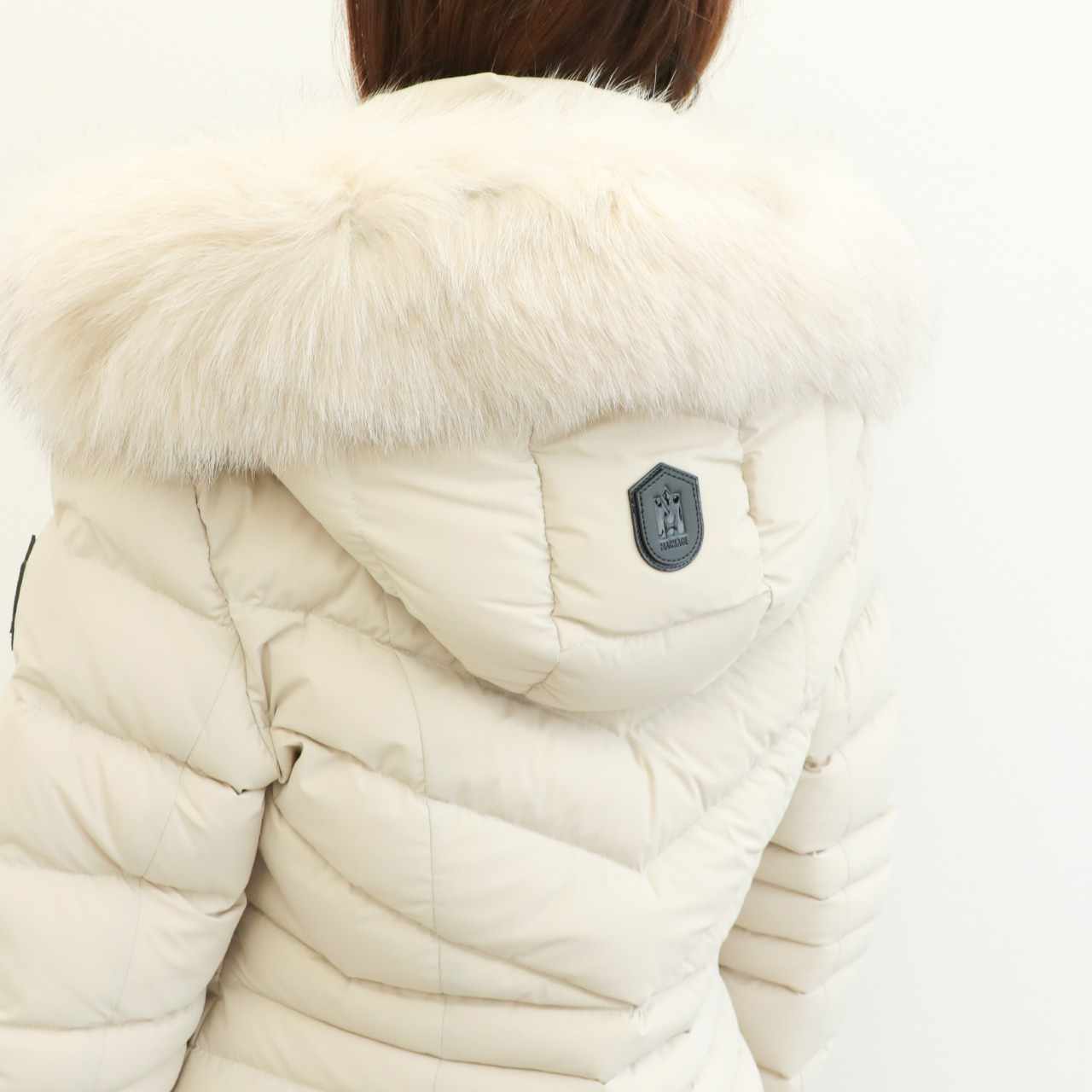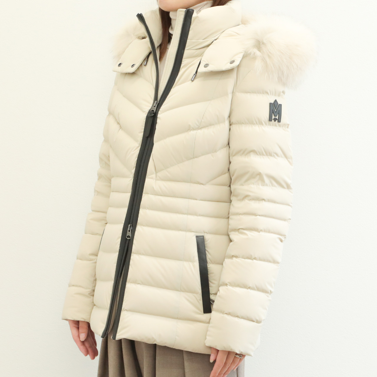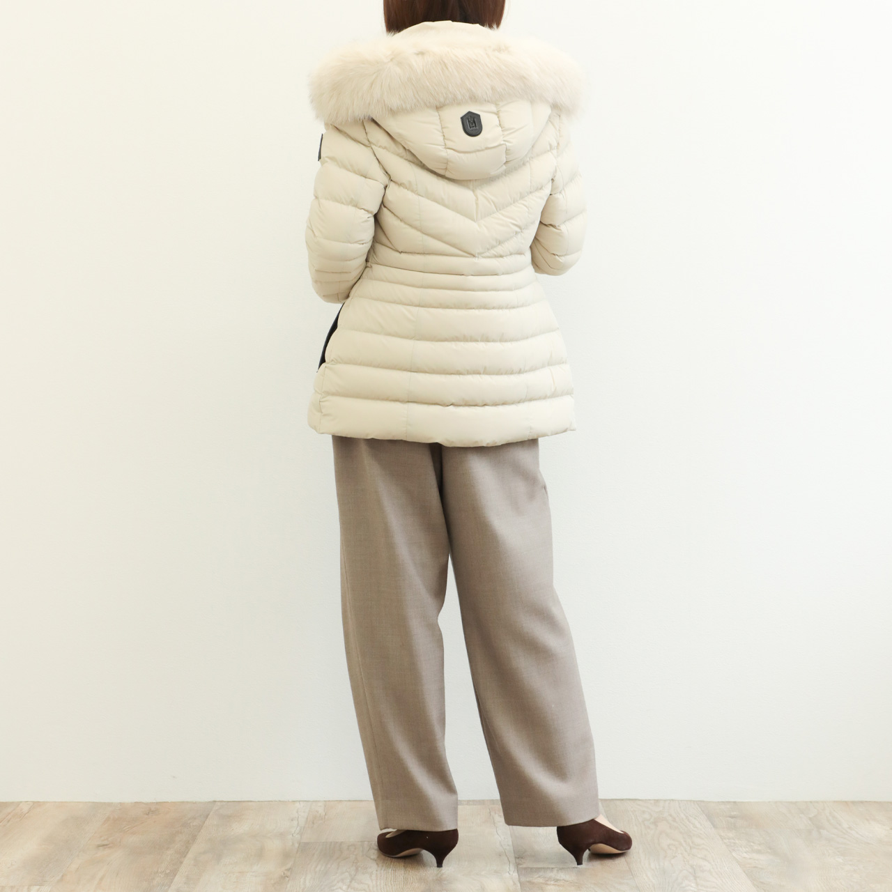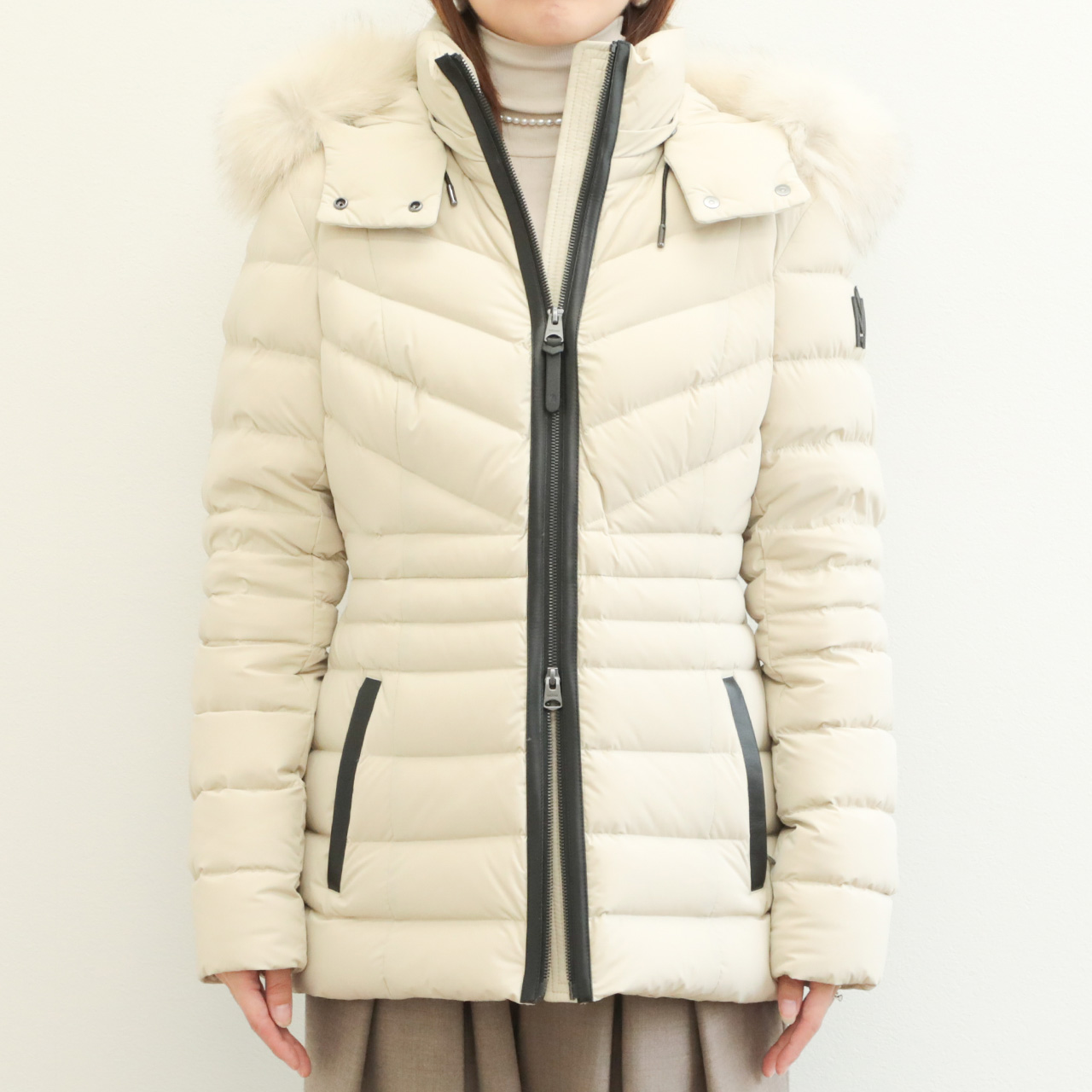 ボディはストレッチナイロンを使用。光沢を抑えたマットな質感でカジュアルさを抑えた上品な雰囲気に仕上げられております。脇ポケット、フロントジップの脇部分は牛革を使用し、フード部分にはボリュームと自然な艶が魅力のフォックスファーを使用。これにより非常にラグジュアリーな一着に仕上がっております。
