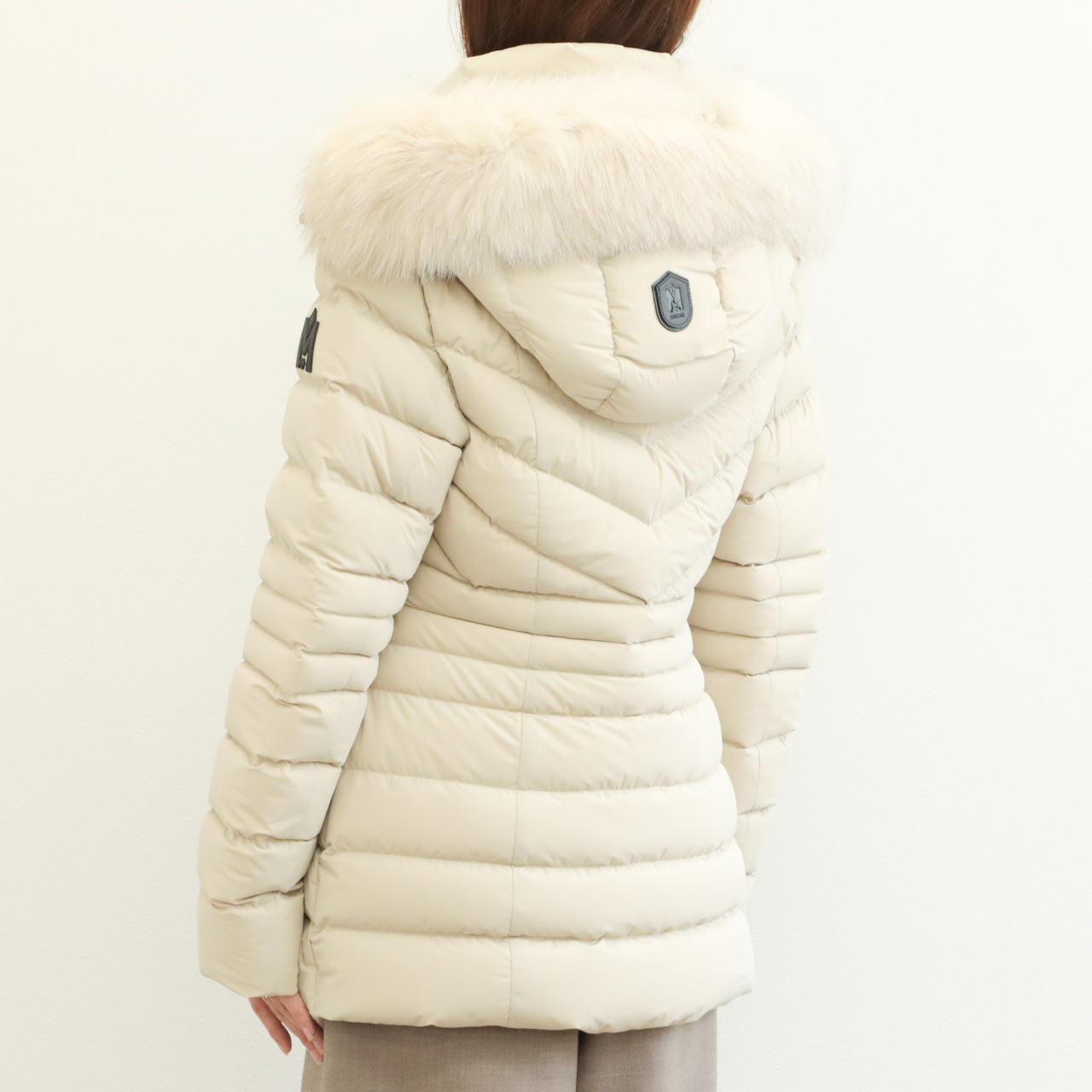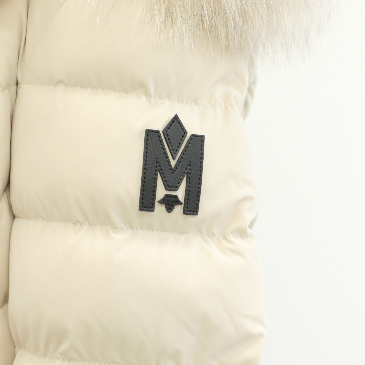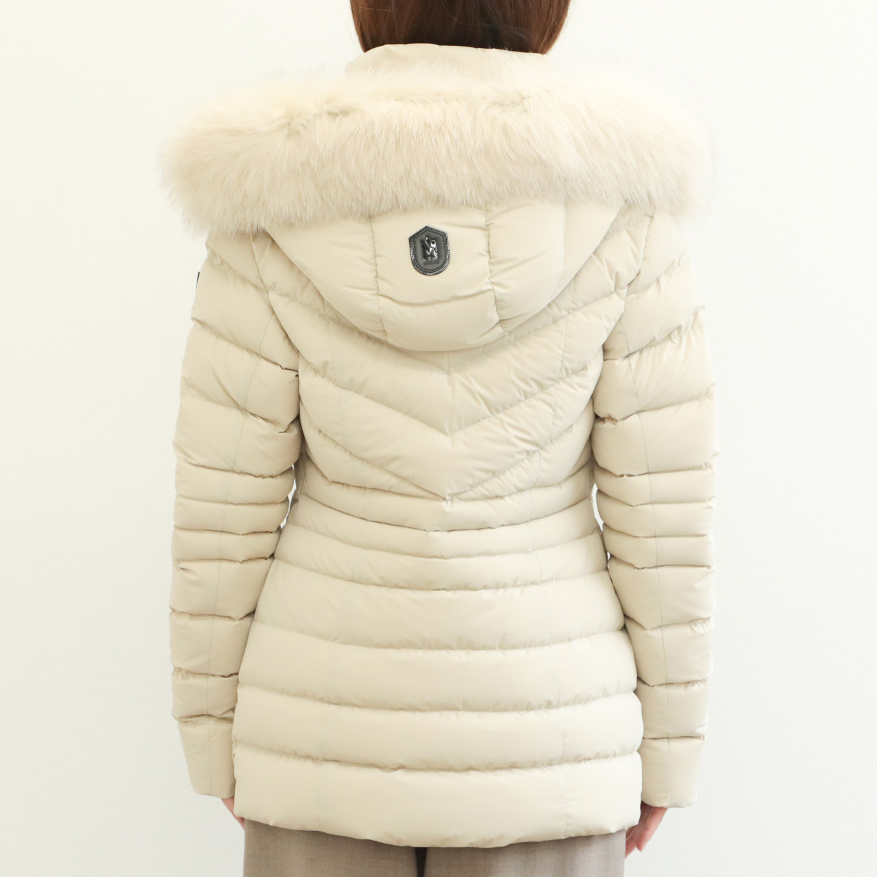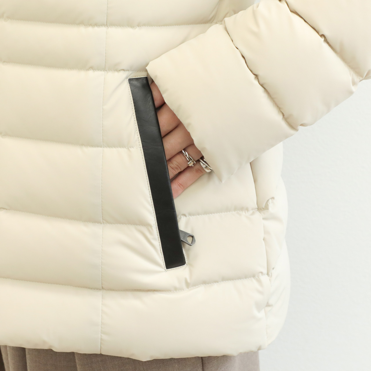 ボディはストレッチナイロンを使用。光沢を抑えたマットな質感でカジュアルさを抑えた上品な雰囲気に仕上げられております。脇ポケット、フロントジップの脇部分は牛革を使用し、フード部分にはボリュームと自然な艶が魅力のフォックスファーを使用。これにより非常にラグジュアリーな一着に仕上がっております。