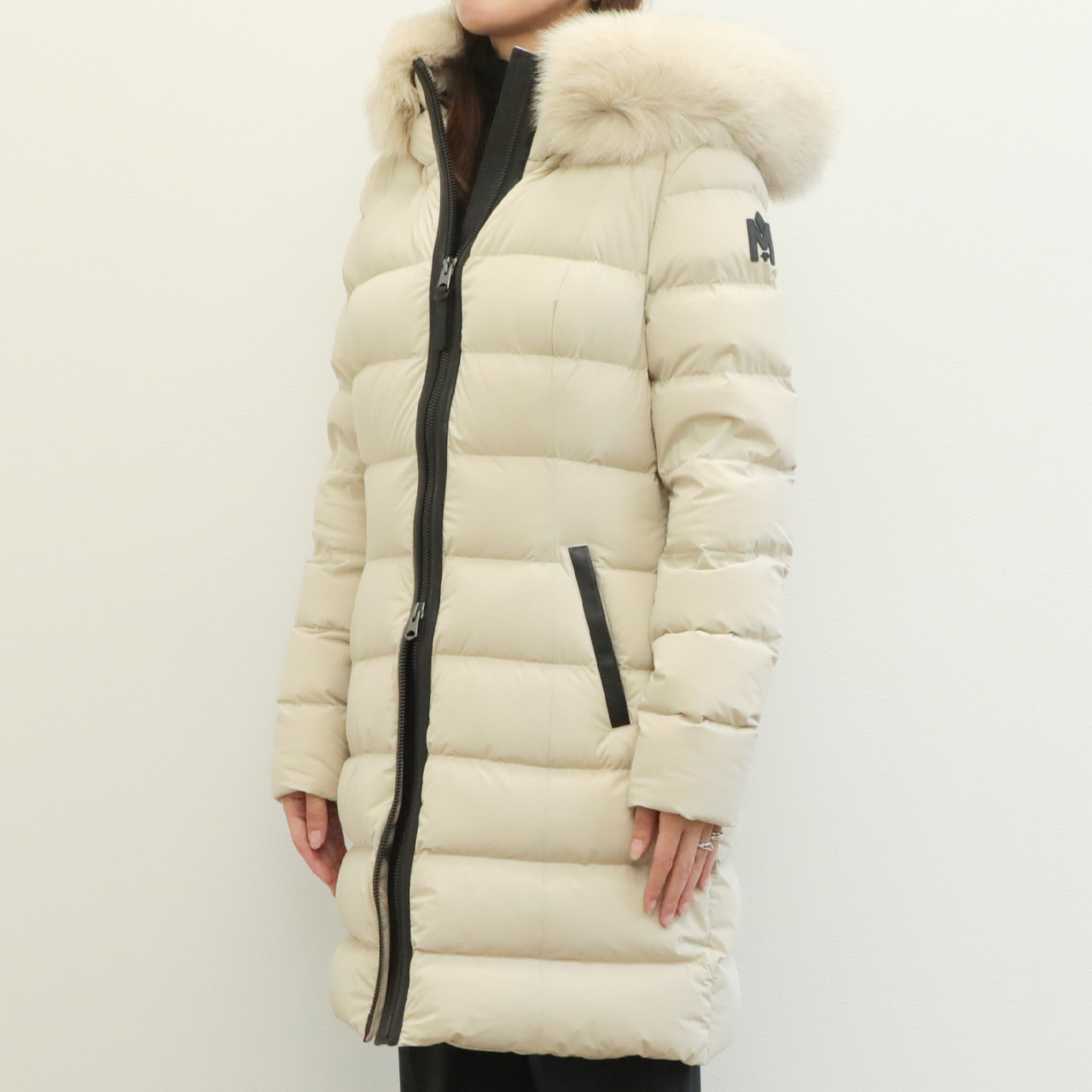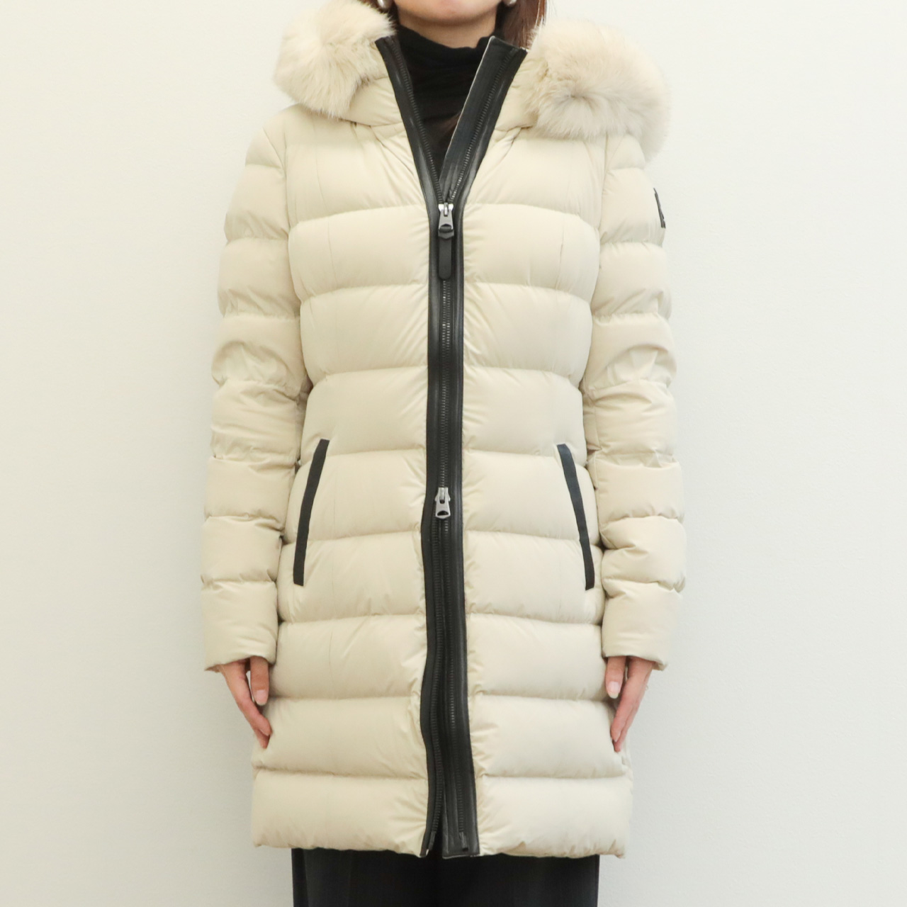 ボディはストレッチナイロンを使用。光沢を抑えたマットな質感でカジュアルさを抑えた上品な雰囲気に仕上げられております。脇ポケット、フロントジップの脇部分は牛革を使用し、フード部分にはボリュームと自然な艶が魅力のフォックスファーを使用。これにより非常にラグジュアリーな一着に仕上がっております。