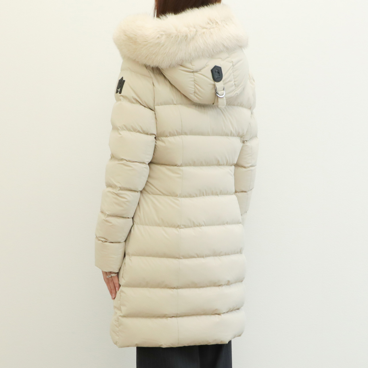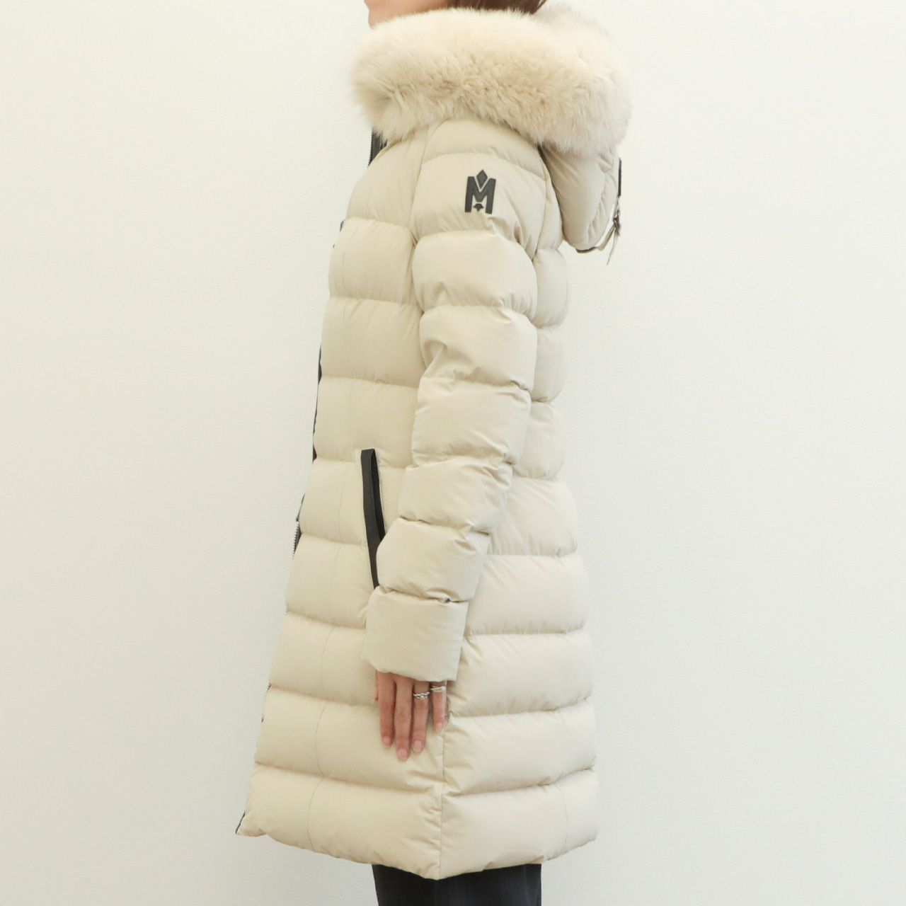 ファーに関してはネックからショルダーラインを覆う形でつけられており、これほどの贅沢なファー使いはMACKAGEの中でもなく、シグニチャーモデルといってもいい一着。