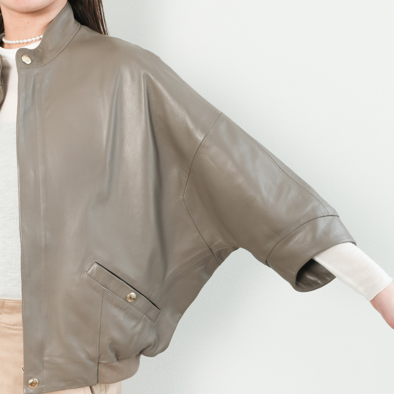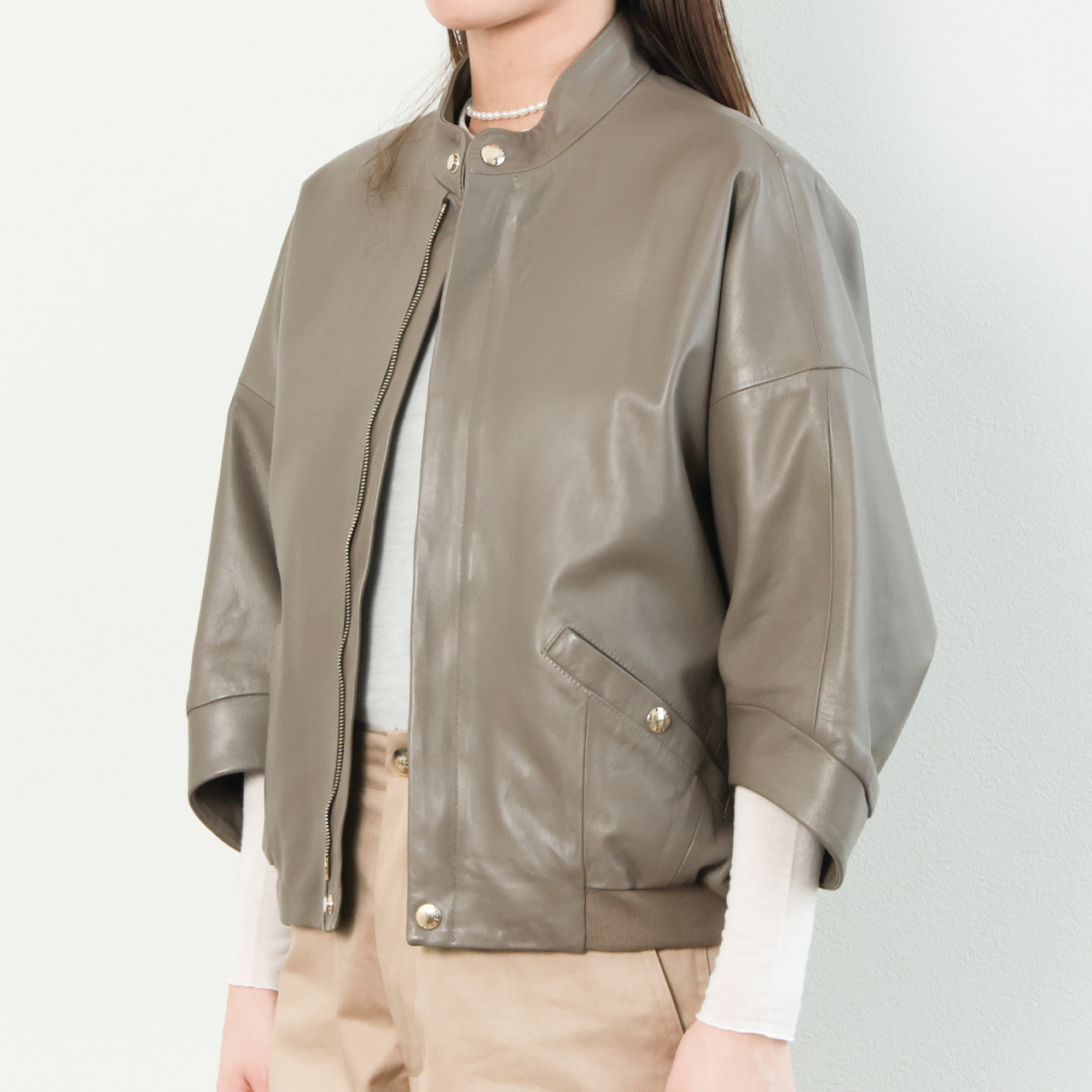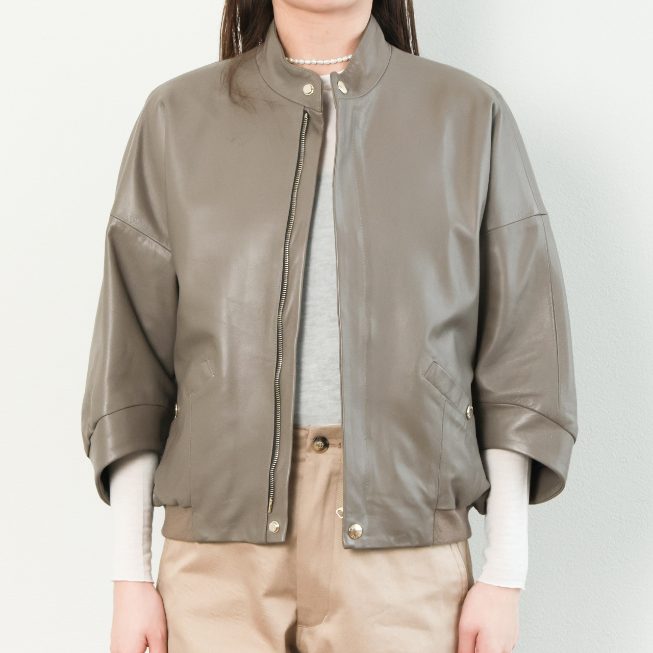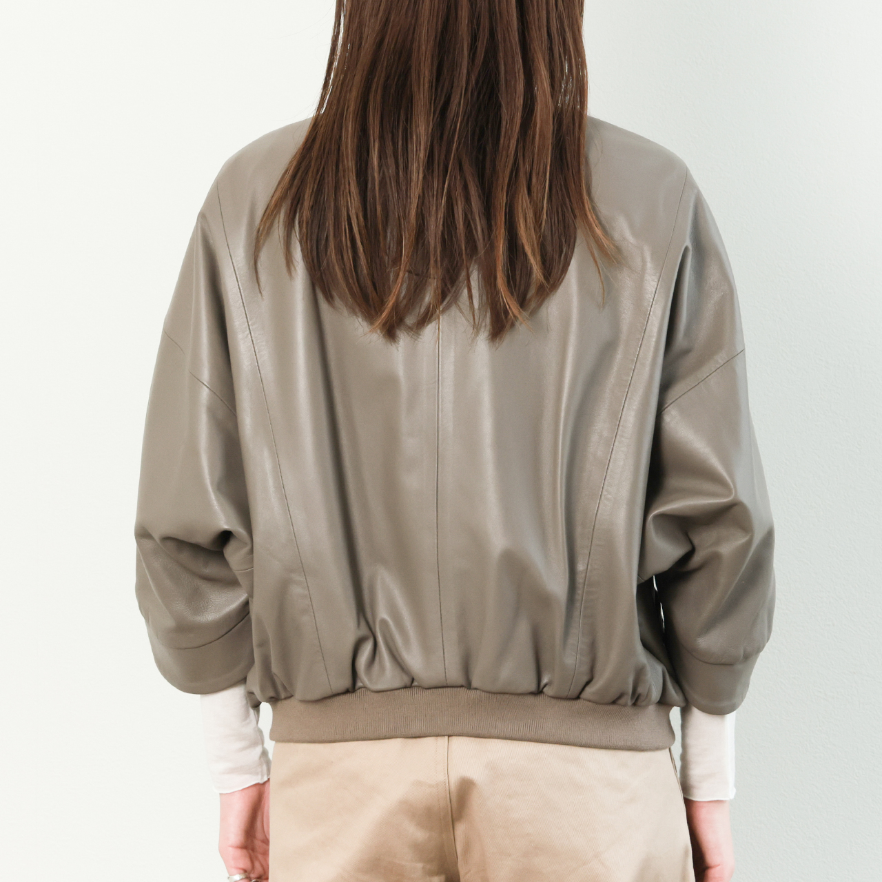 今季ご用意したのはこちらのレザーブルゾン。何といってもこのレディースらしいドルマンスリーブのシルエットが目を惹きます。