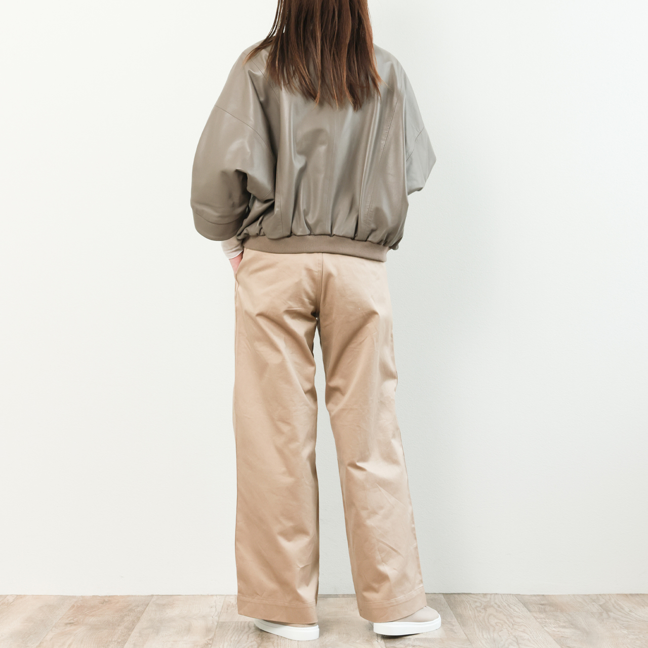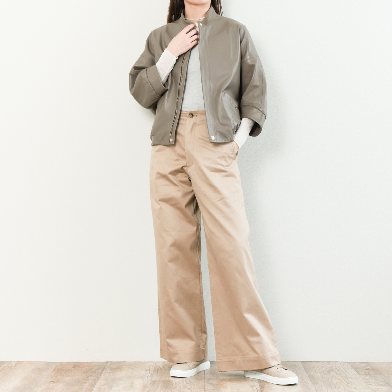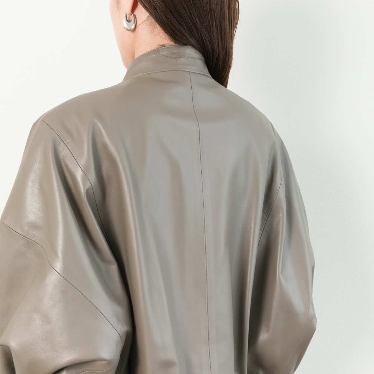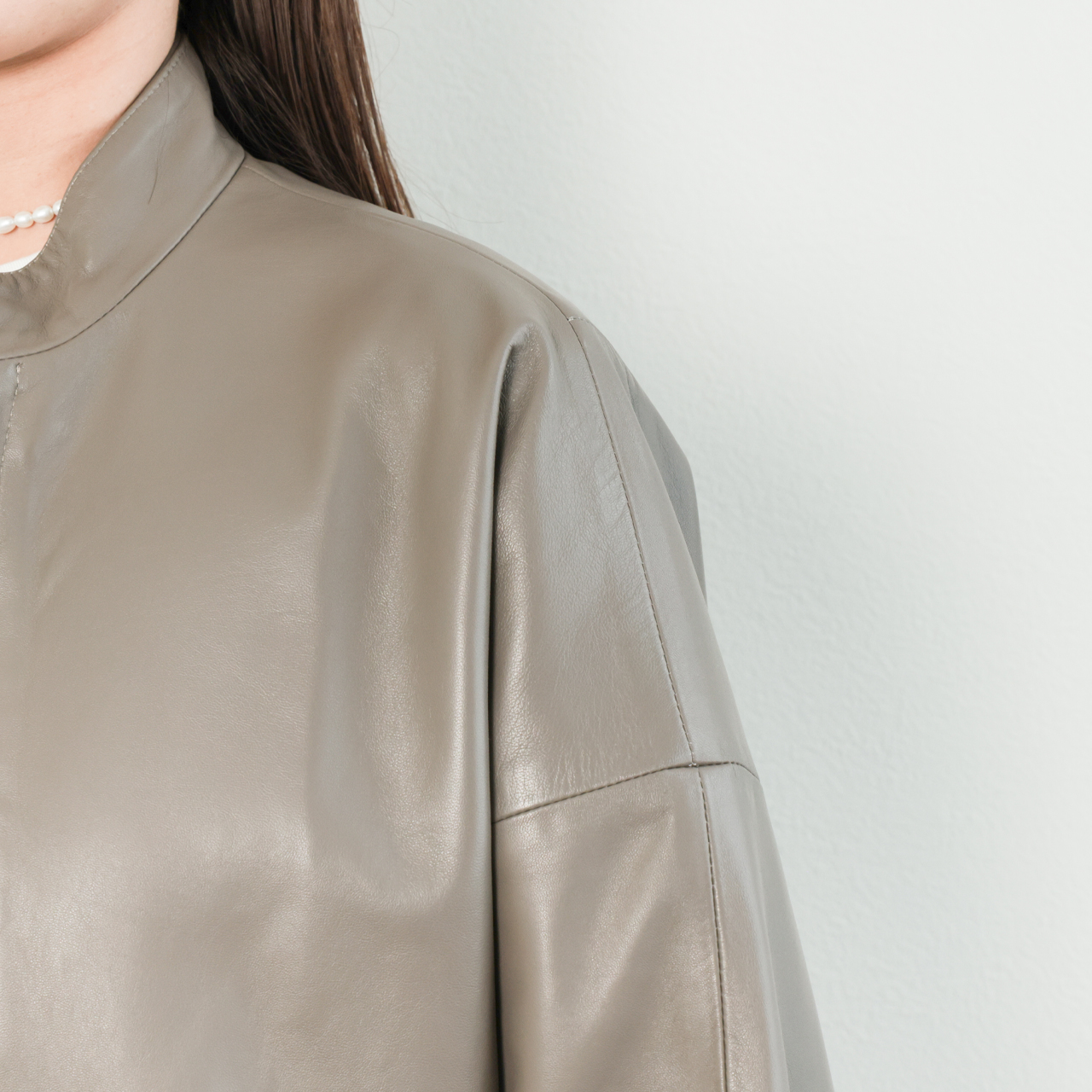 今季ご用意したのはこちらのレザーブルゾン。何といってもこのレディースらしいドルマンスリーブのシルエットが目を惹きます。
