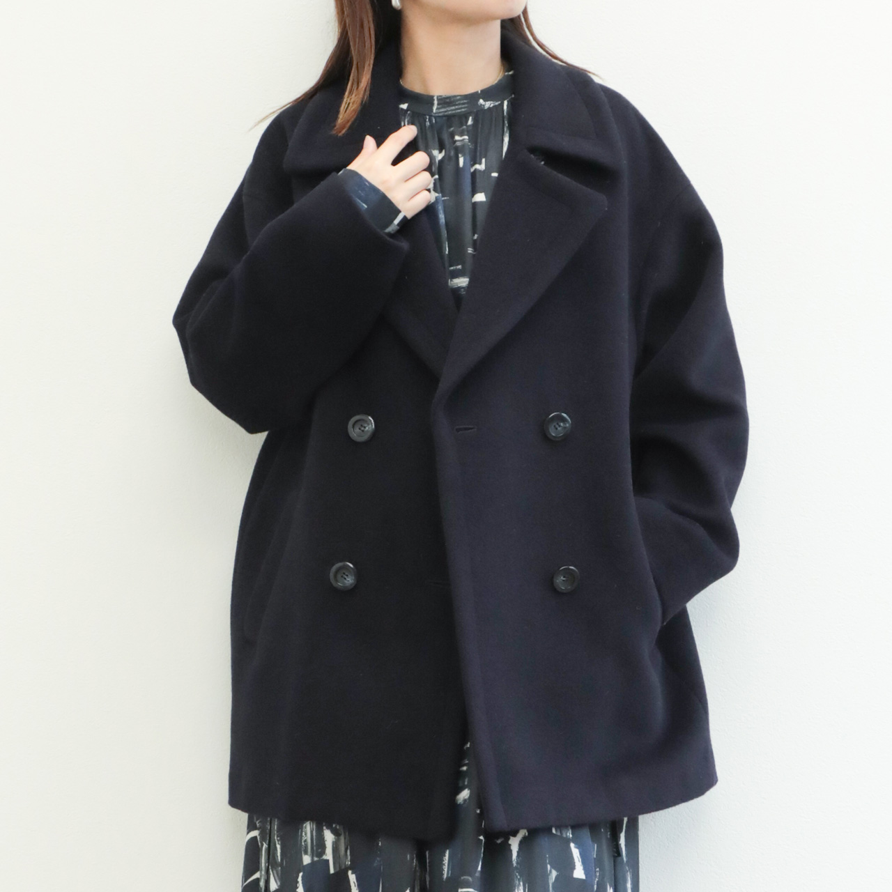 drawell ドロウェル コート Pコート ダブルブレスト ショート丈 ビーバー仕上げ アンゴラ ウール ナイロン オックスフォード 4-2-DW-45 ネイビー