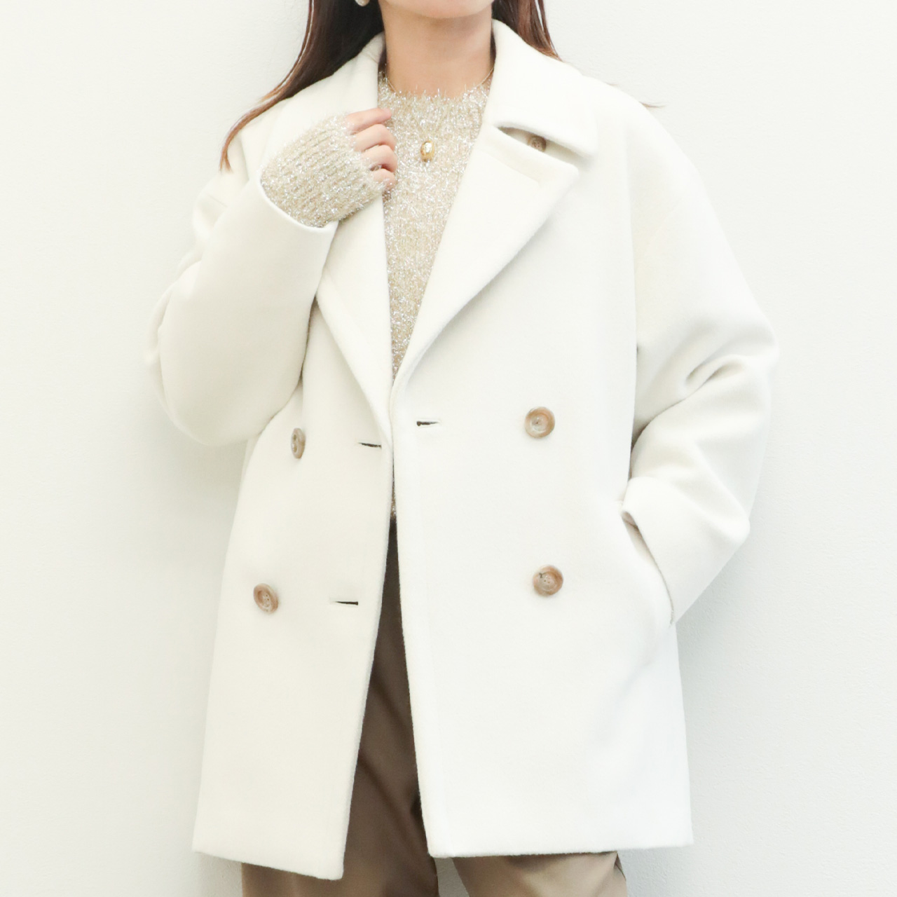 drawell ドロウェル コート Pコート ダブルブレスト ショート丈 シャギー アルパカ ウール ナイロン 4-2-DW-44 アイボリー