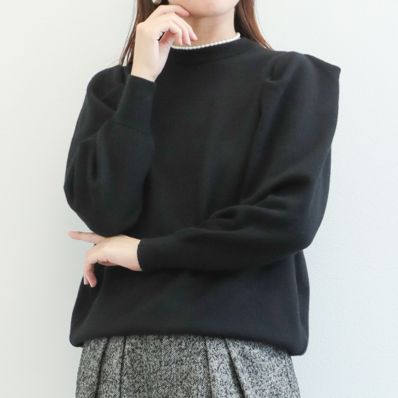 LOWER ローヴァー レディース ニット 長袖 ウール メリノ ウィナーズ 丸首 クルーネック パワーショルダー 14G Fulling Plainstitch Power Shoulder Pullover LW-51 BLACK/ブラック