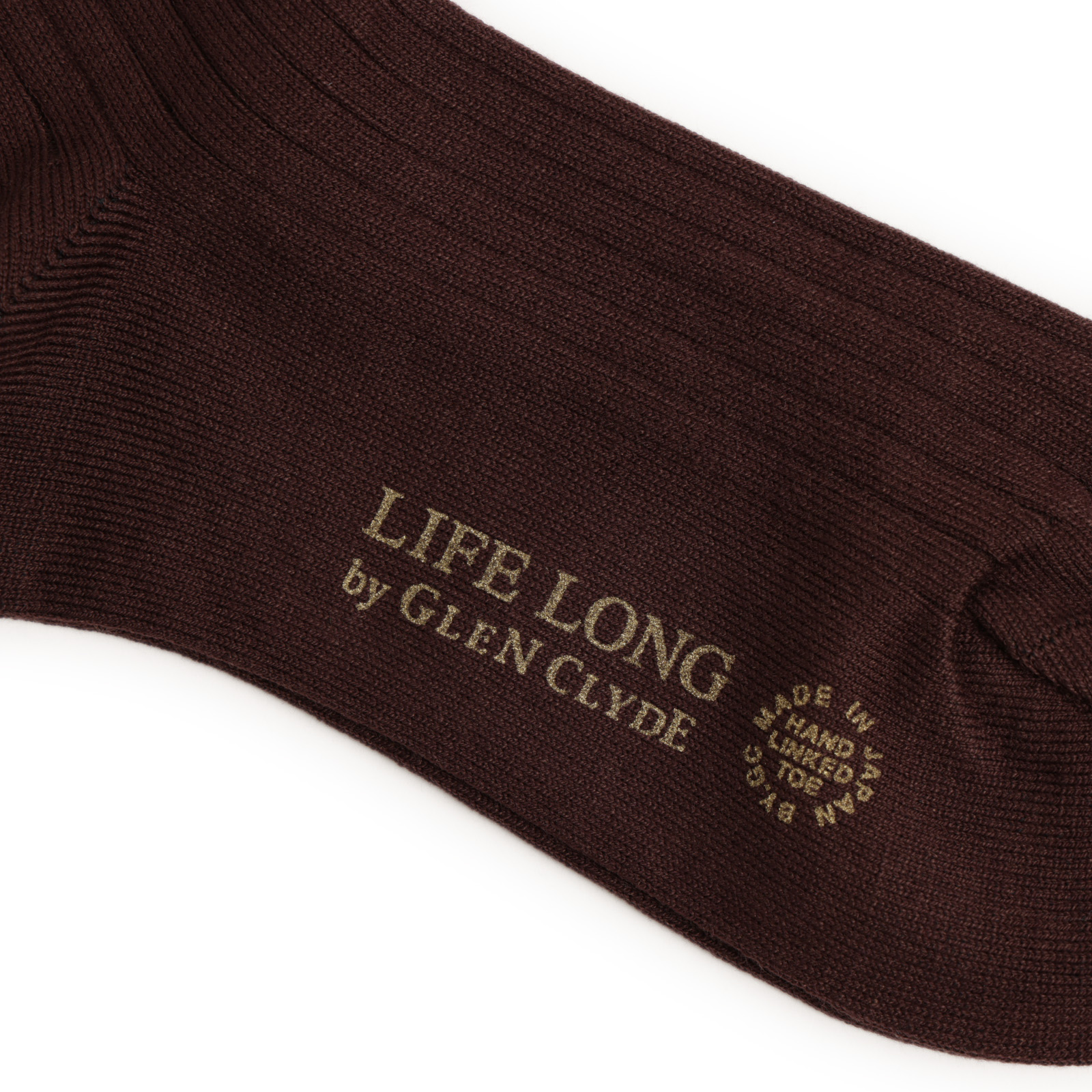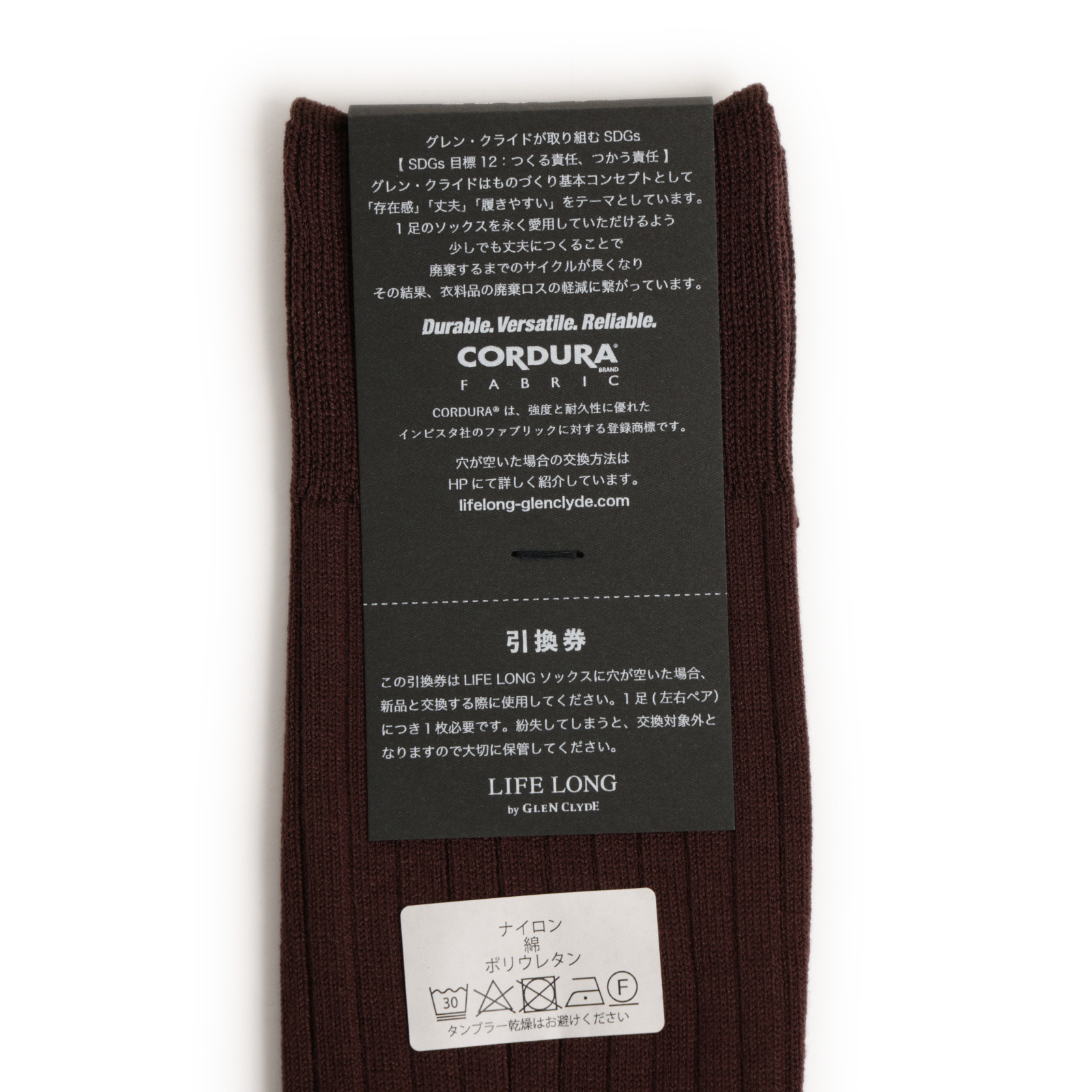 【永久交換保証】GLENCLYDE グレンクライド レギュラー ソックス コットン ナイロン ストレッチ リブ 日本製 薄手 LIFE LONG TS-5 ブラウン