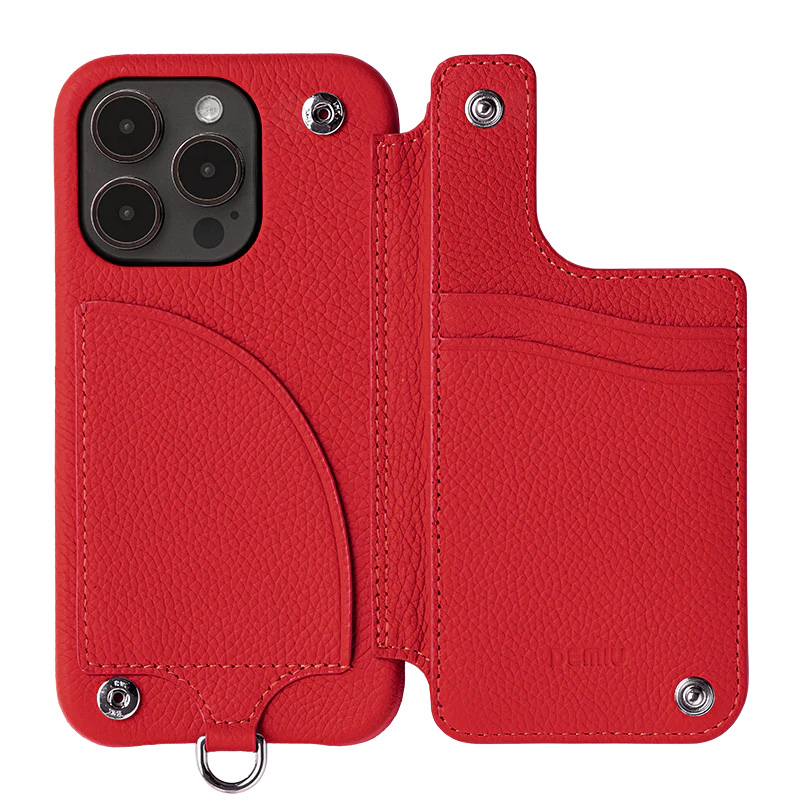 DEMIU デミュウ BALLON バロン スマホカバー スマホケース 牛革 カード入れ 背面 手帳型 ルビー