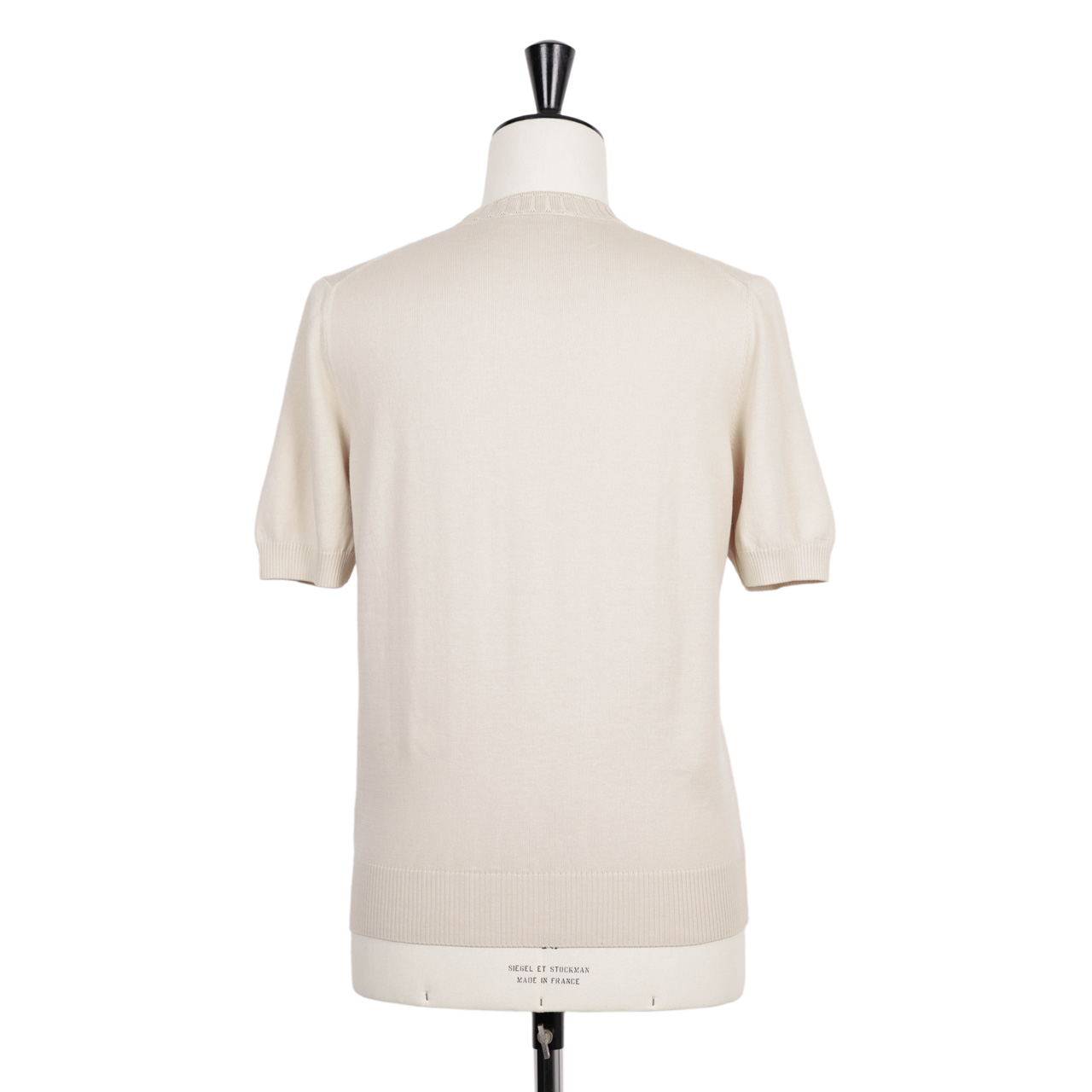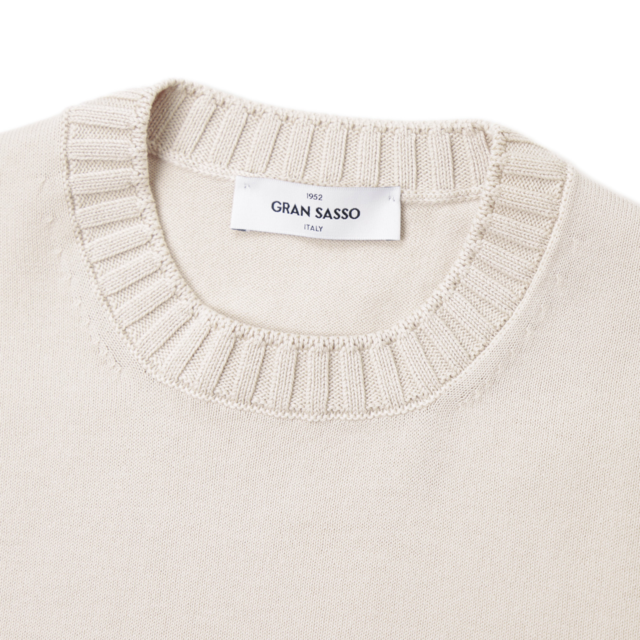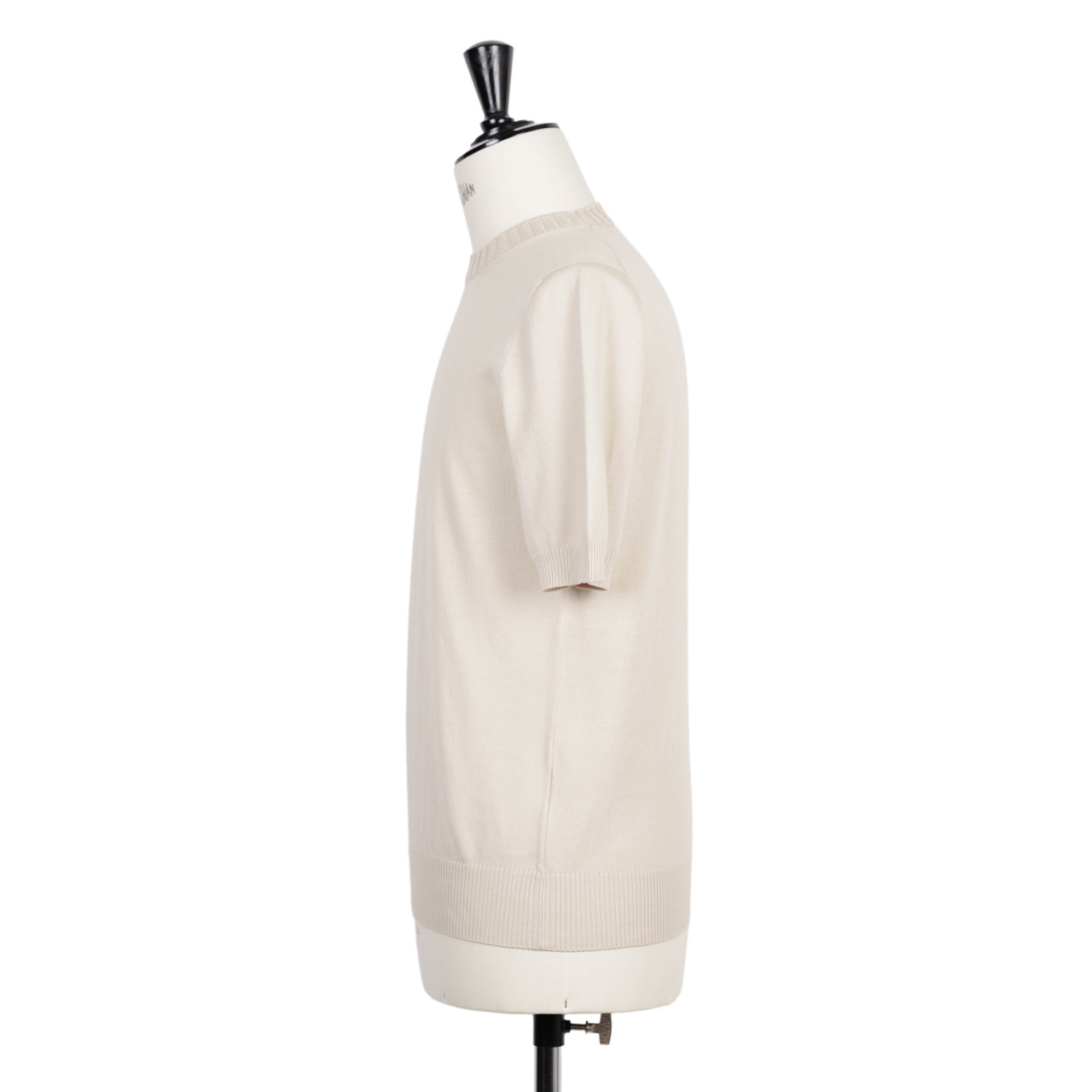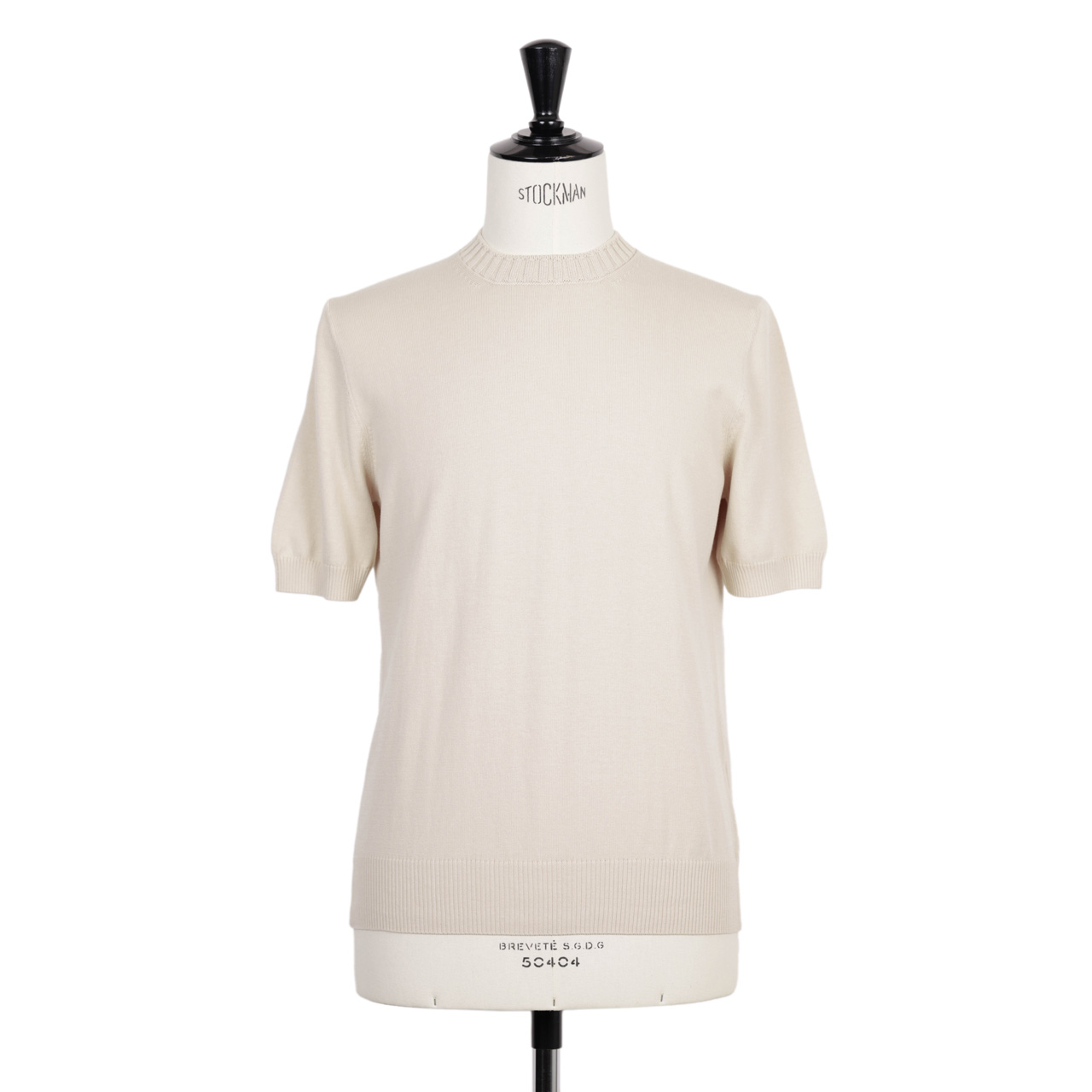 Gran Sasso グランサッソ ニット Tシャツ ハイゲージ コットン エジプト綿 クルーネック プルオーバー リブ 半袖 57188 18163 012/ベージュ
