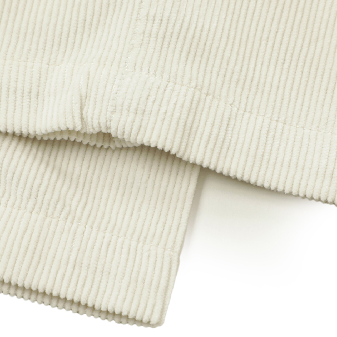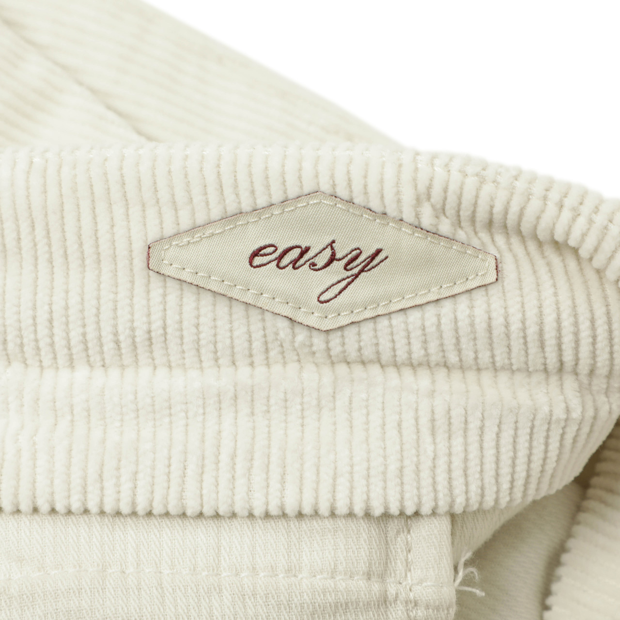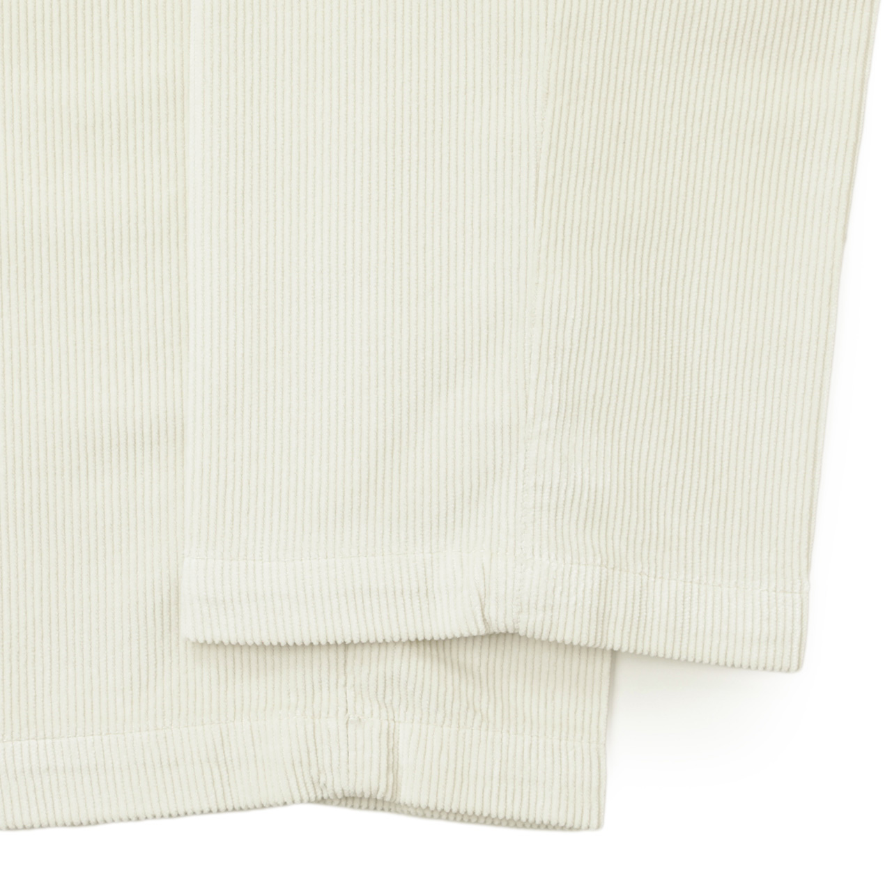 素材はコーデュロイを使用。コットンをベースにレーヨン、ストレッチを混紡することでコンフォートな穿き心地はもちろん、生地にレーヨンを混紡することで生まれるとろみのある柔らかさ、絶妙な光沢感もポイント。