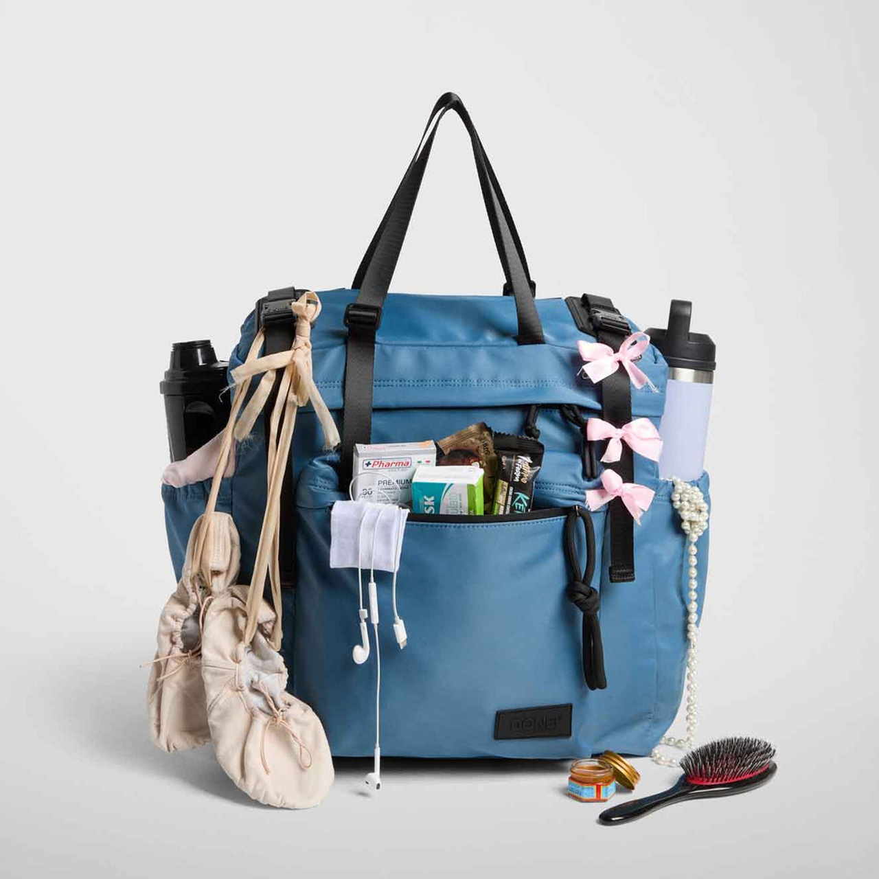 DONE!では80%認証リサイクルナイロンや、生産廃棄物からアップサイクルされたレザー等、持続可能な素材を使用。
