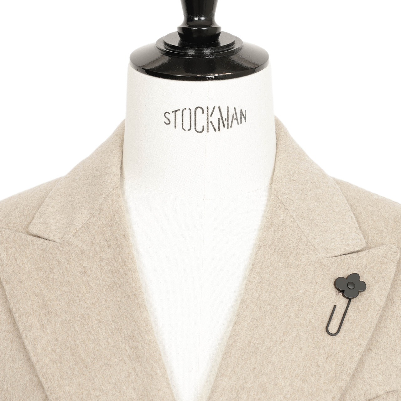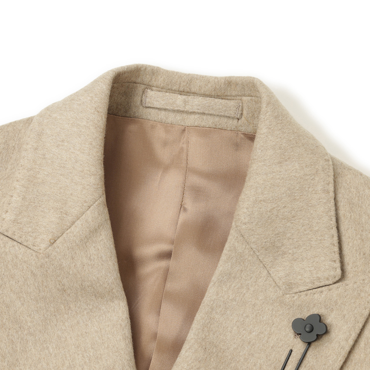 上品な光沢を放つ上質なウール素材は世界最高峰の生地メーカー「Loro Piana」社製の物を使用。ウールでありながらカシミヤのような毛足の長い素材感が特徴的です。加えて同社のRain Systemを採用しておりますので、エレガントな見た目でありながら撥水性もあり機能性、見た目の風合いの良さを兼ね備えた生地感になっております。