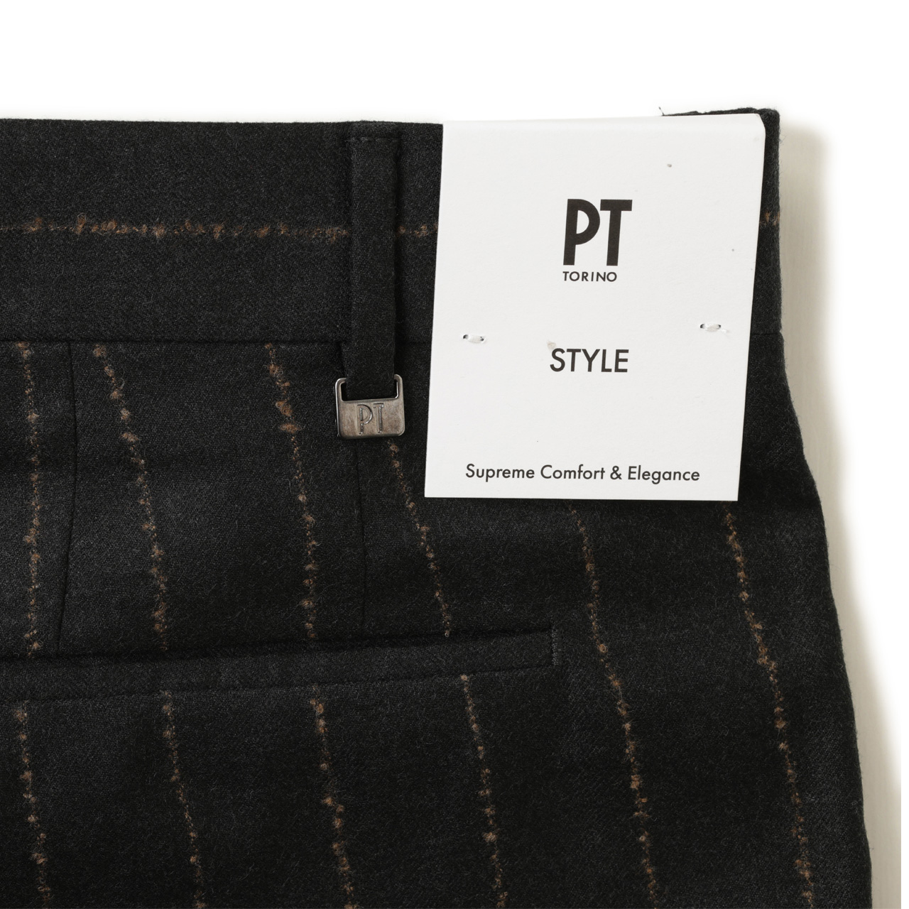 PTのブランドネームは"PANTALONI TORINO "(トリノのパンツ)に由来し、創業地であるトリノへのトリビュートとともに、PT TORINOにはナンバー1を目指す強い意志が込められています。
