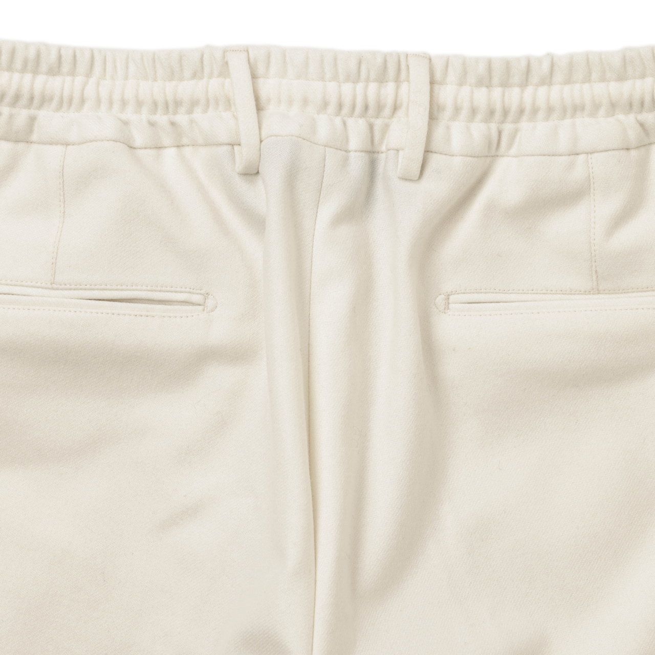 ベースとなったのが、同社でもリラックスムードを楽しめる一本として提案されている「RIMA」。ドローコードとバックシャーリングをウエスト周りに配し、楽に穿いていただける一本です。