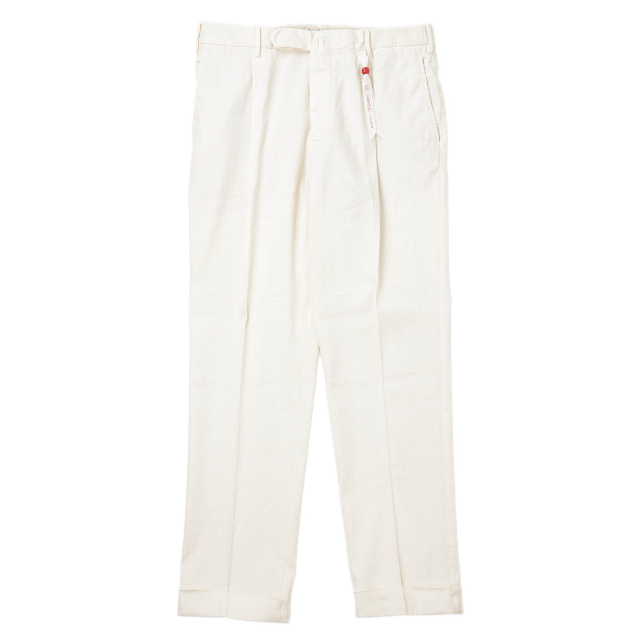 今季はこちらのコットンリネンパンツをご用意しました。春夏らしい軽快な素材感で魅力的な一本に仕上がっています。