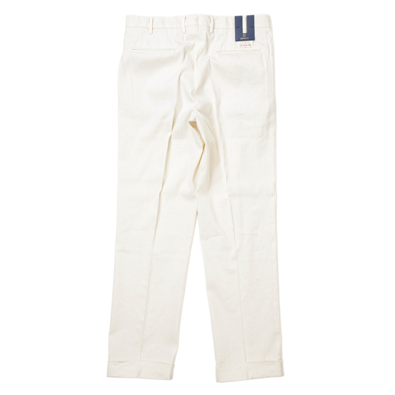 本モデルはEVOLUTOのタグがある通り、サンタニエッロ流のクラシックの解釈で、染めや洗いといった加工を施しており、ベーシック、伝統的でありながらモダンな一本に仕上がっています。