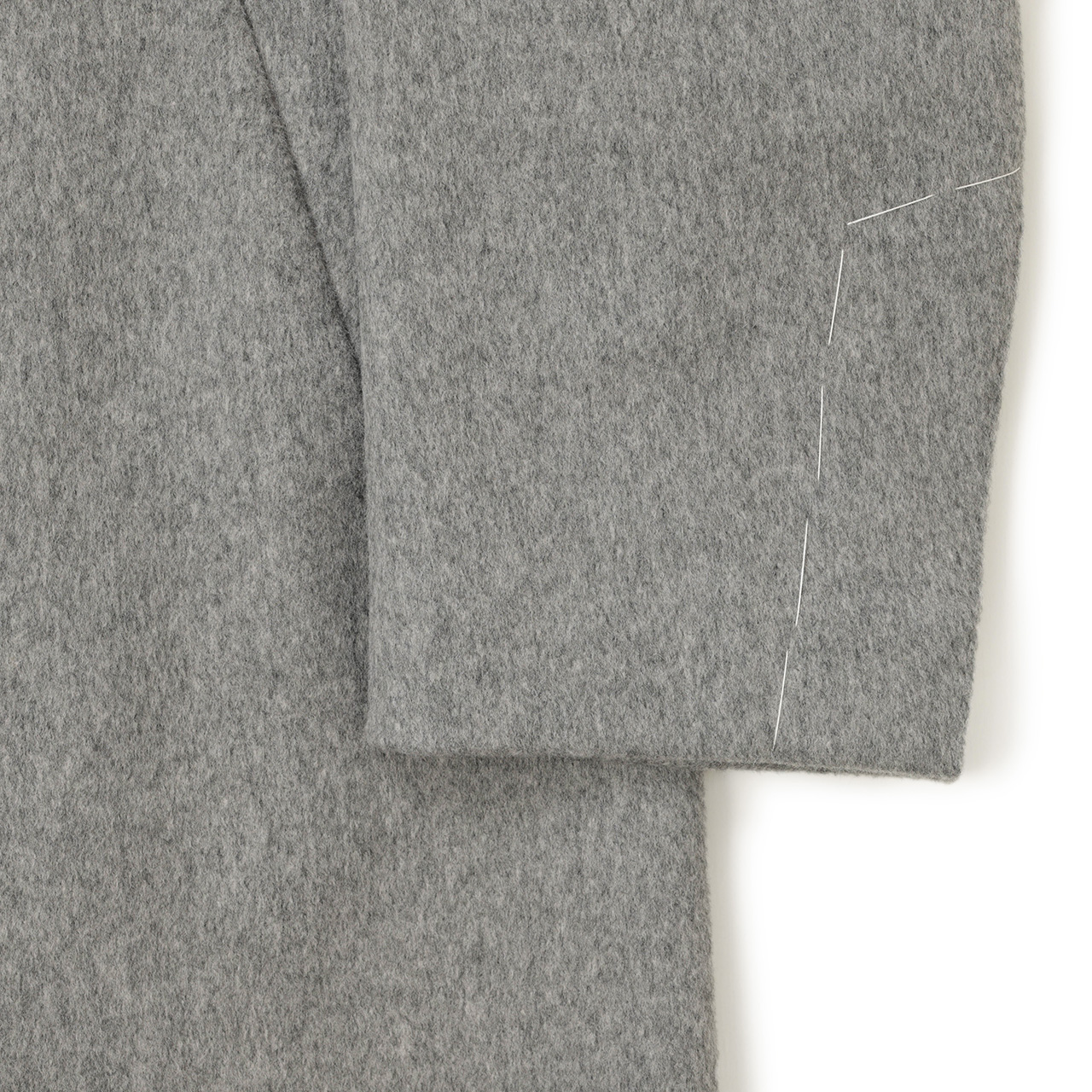 上品な光沢を放つ上質なウール素材は世界最高峰の生地メーカー「Loro Piana」社製の物を使用。ウールでありながらカシミヤのような毛足の長い素材感が特徴的です。加えて同社のRain Systemを採用しておりますので、エレガントな見た目でありながら撥水性もあり機能性、見た目の風合いの良さを兼ね備えた生地感になっております。