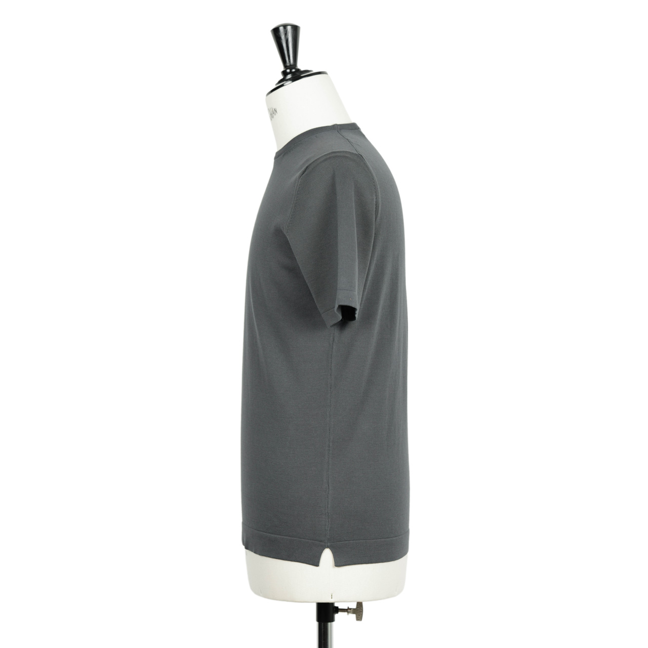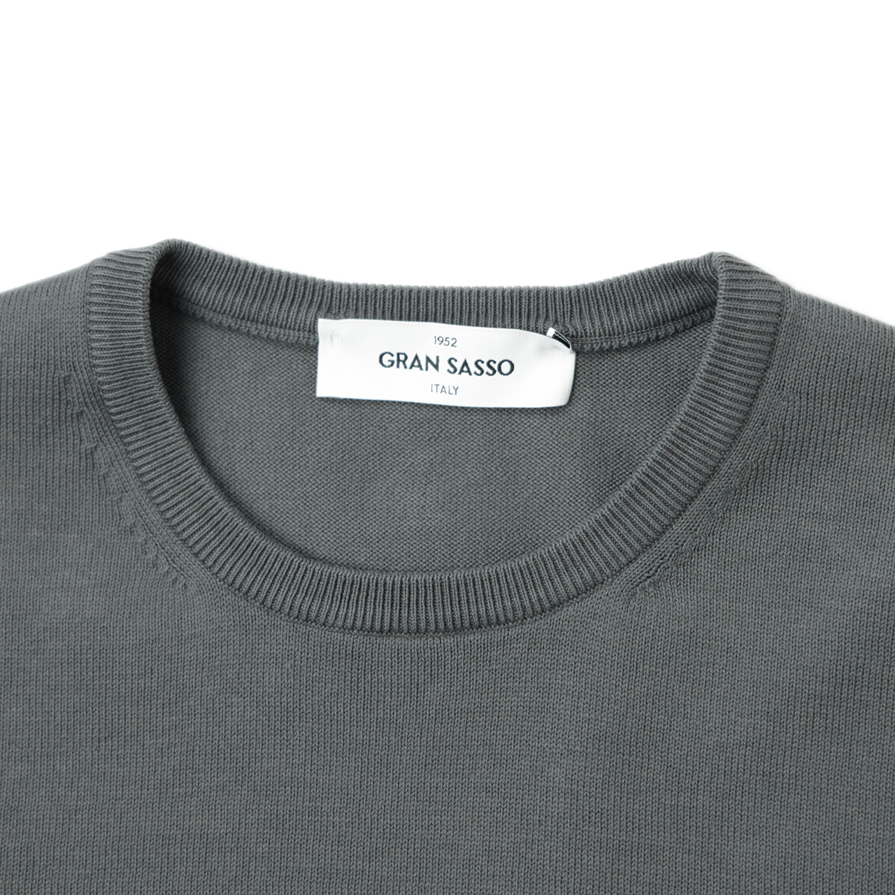 Gran Sasso グランサッソ ニット Tシャツ ハイゲージ コットン エジプト綿 クルーネック プルオーバー 半袖 58138-18120 095(チャコール)