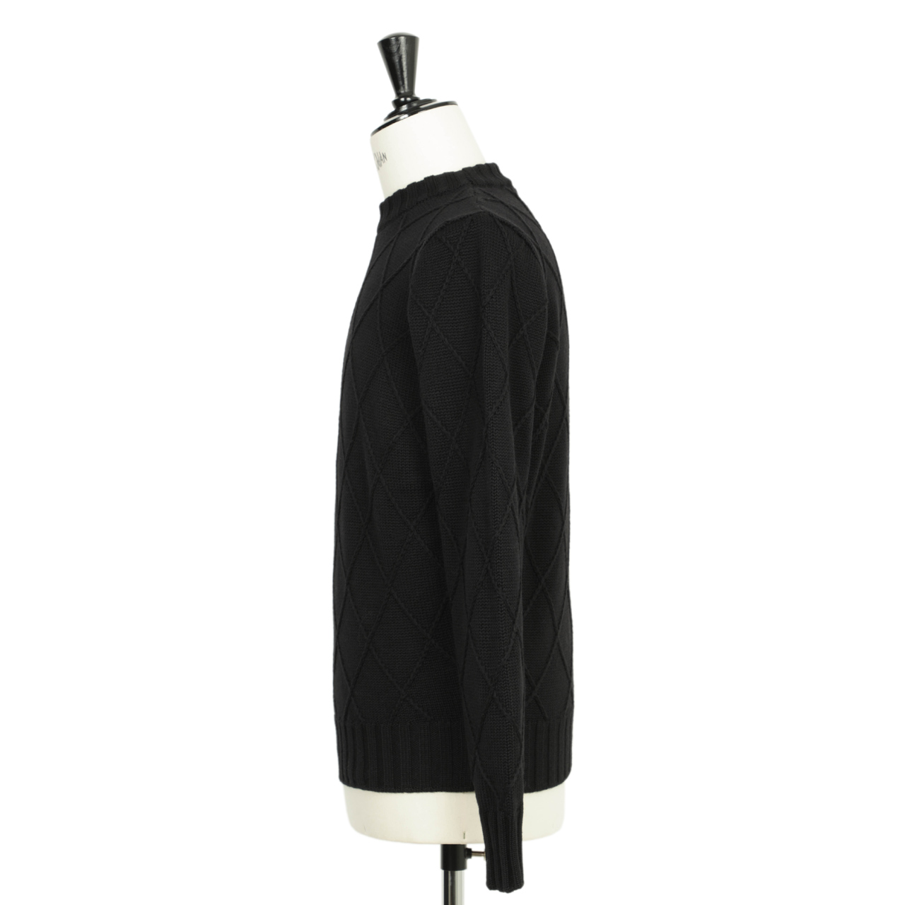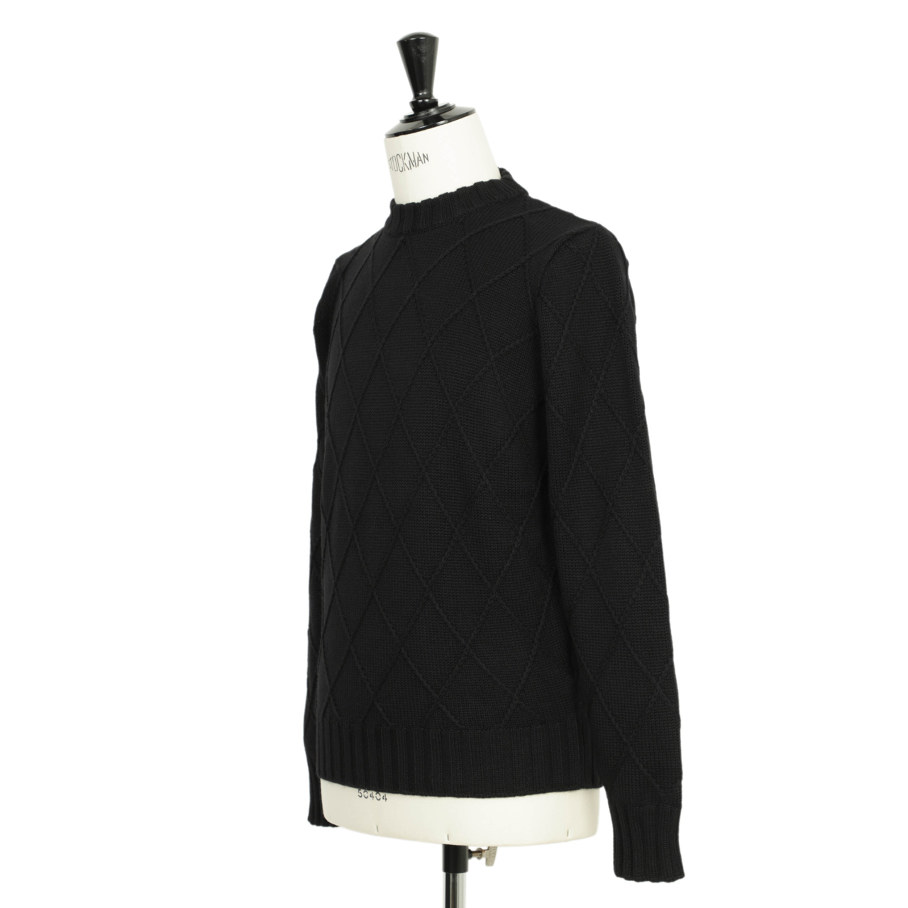 更に全面にダイヤ柄の編みを施しており、一枚で着た時の存在感もばっちり。