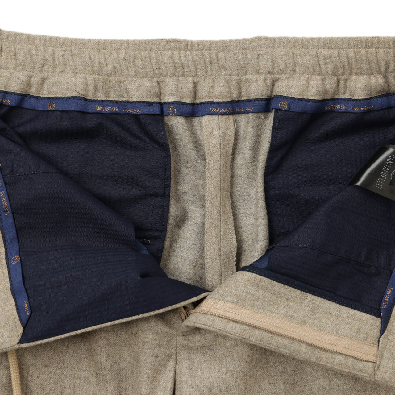 【12月中旬~下旬入荷予定】【菅原靴店別注モデル】SANTANIELLO サンタニエッロ パンツ メンズ ジョガー リブ テーパード バックシャーリング ドローコード ウール RIMA 2695TLCRIM 10/ベージュ