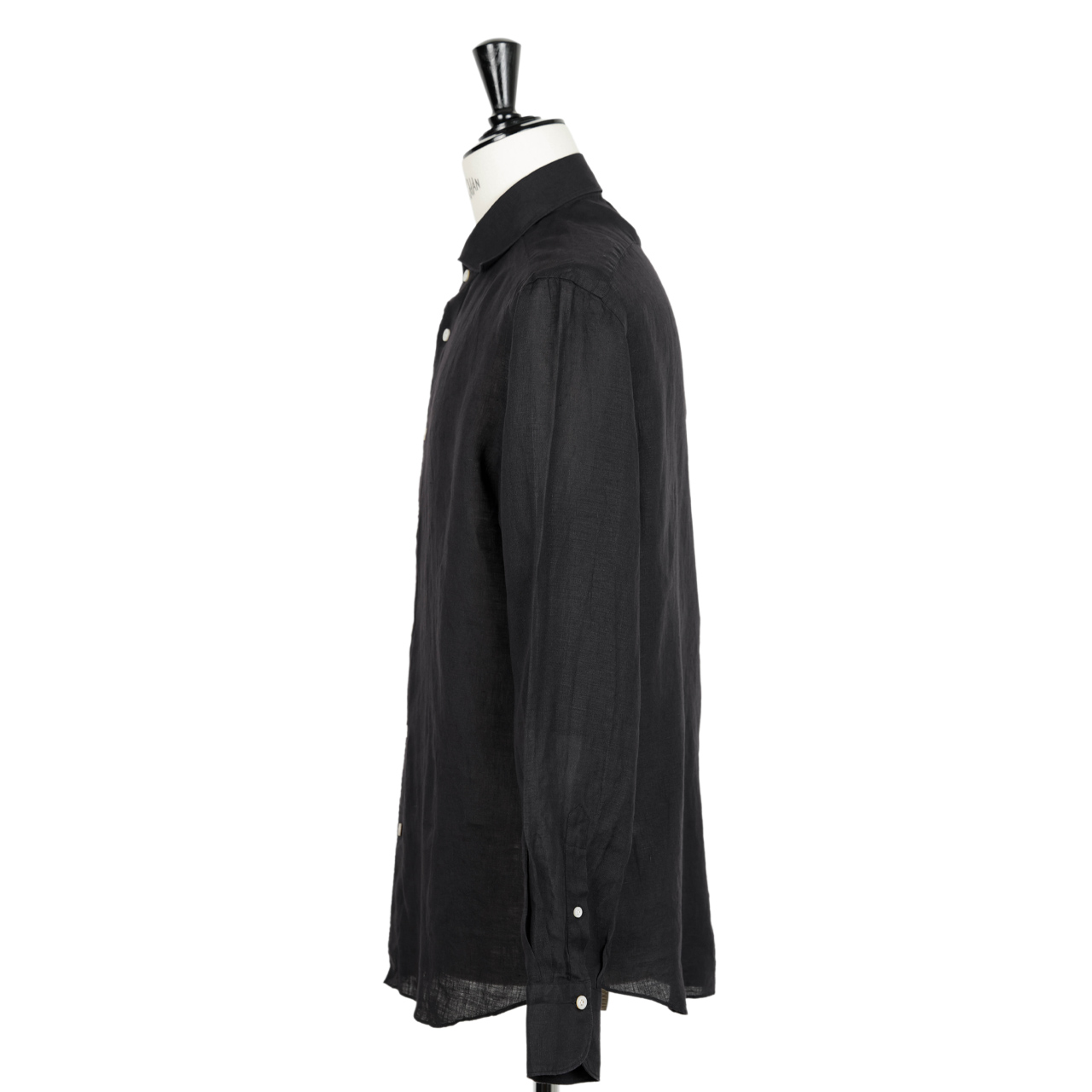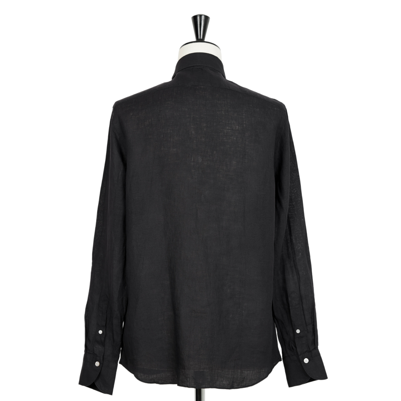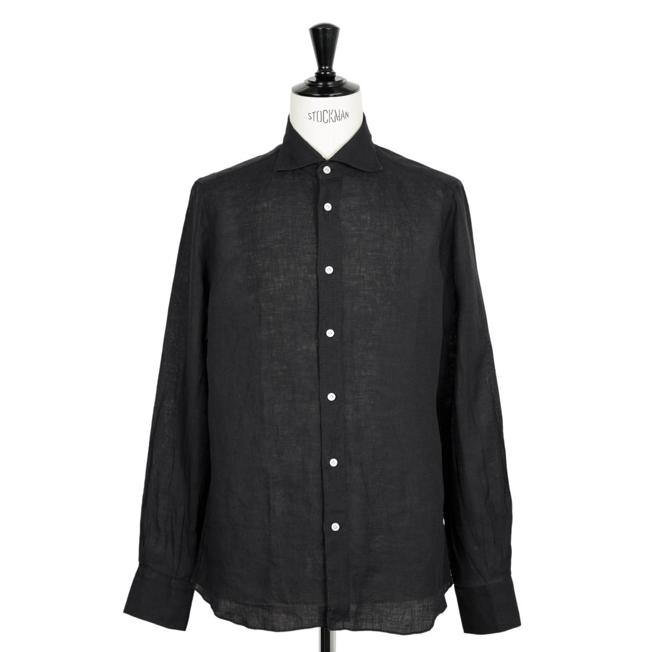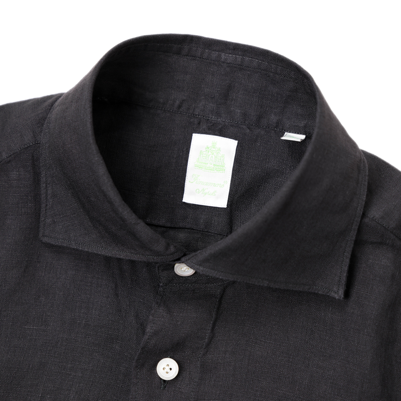 Finamore フィナモレ メンズ シャツ カッタウェイ リネン 麻 SIMONE BALI 長袖 製品洗い 046098 C0650 12/ブラック