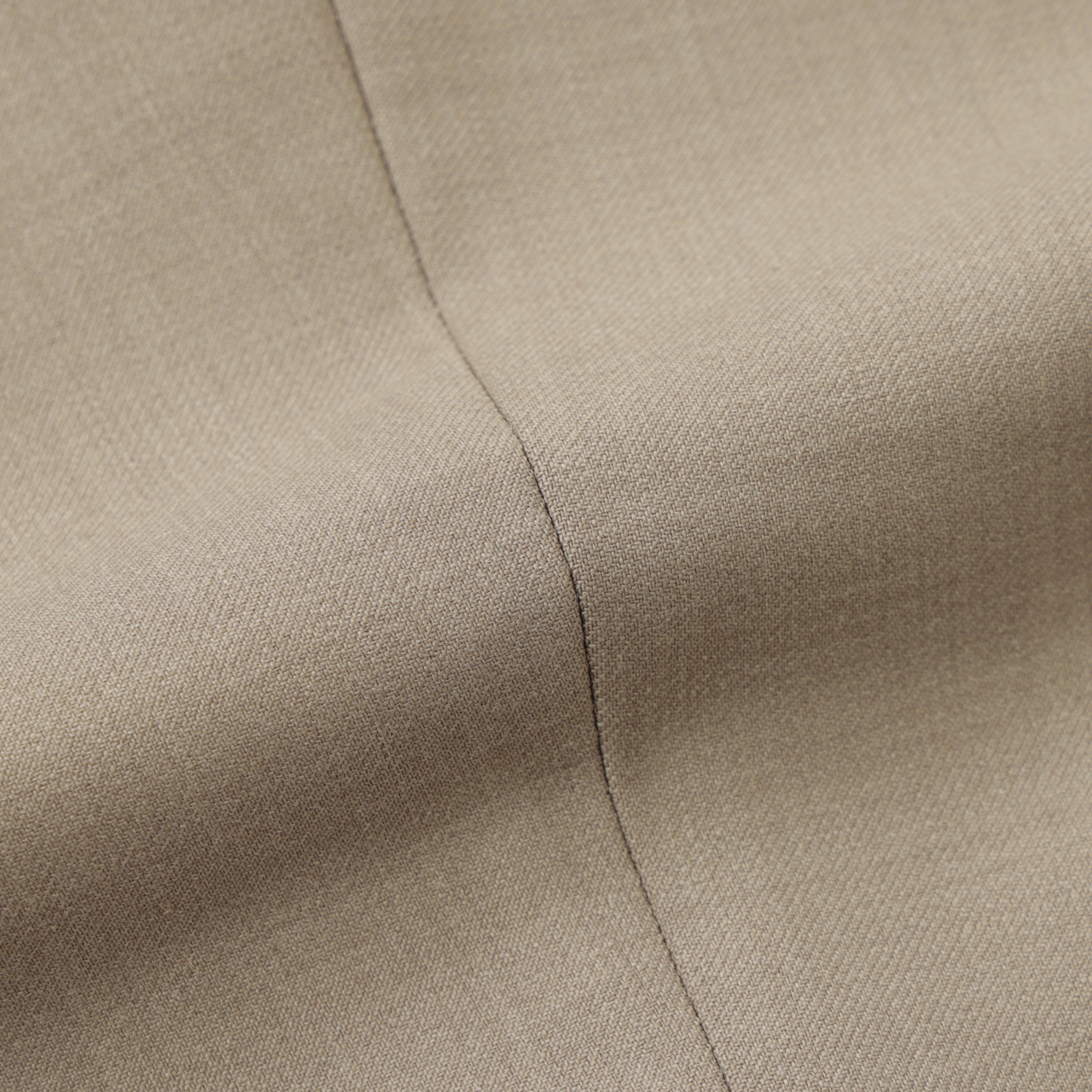 素材はウールをベースにポリエステルを混紡したツイル生地。秋冬らしい程よく厚みのある生地感(気温によっては春先まで着用可能)ながら、上質なウールとポリエステルを混紡することで柔らかさがあり、ストレッチ素材も混紡することでコンフォートさもプラスしています。