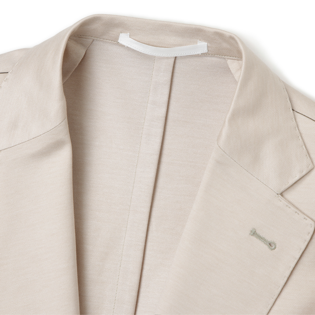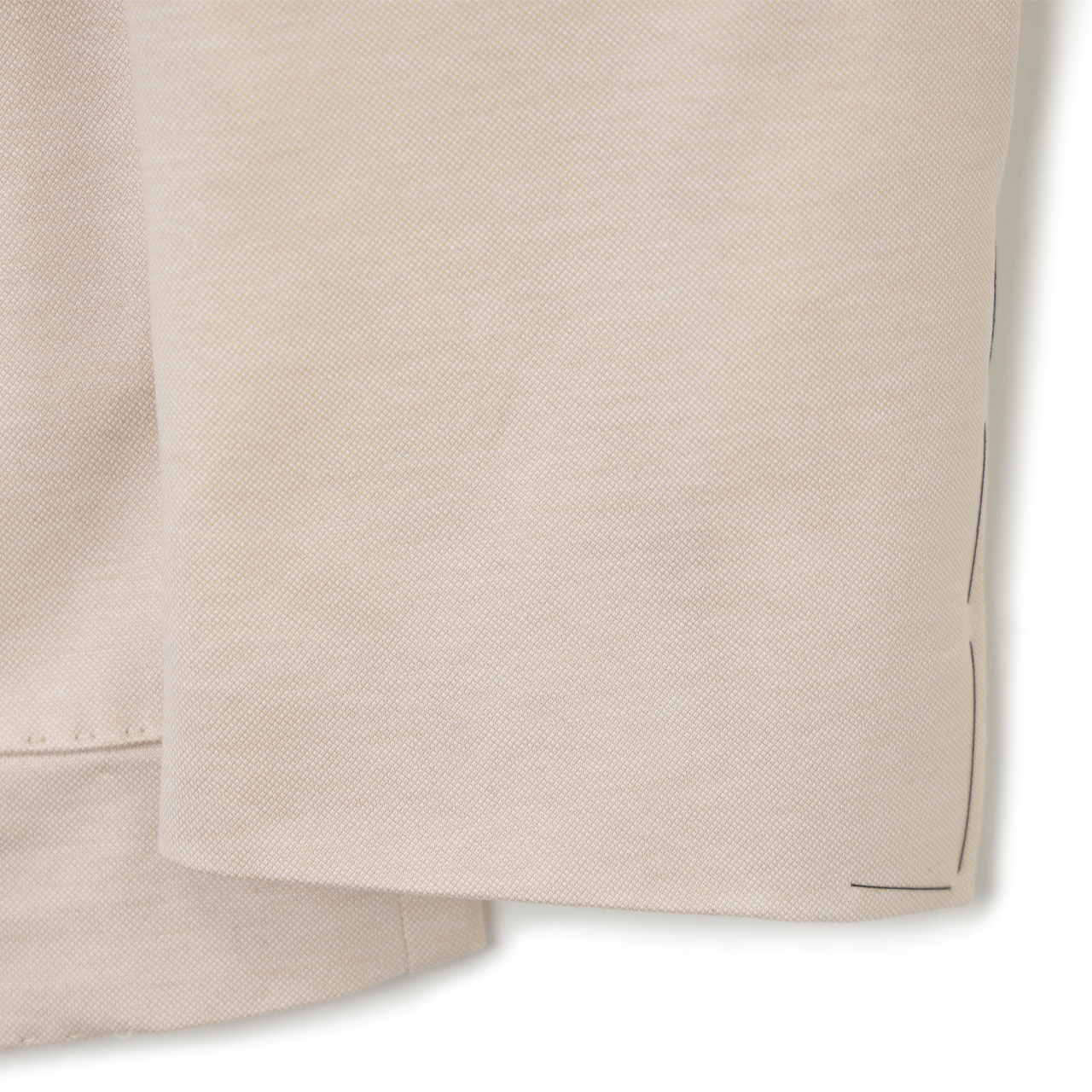 メランジ調の鹿の子素材が何とも春夏らしい軽快さを演出する一着。上質なコットンを使用したことで生まれているナチュラルな艶と滑らかな素材感が着る方をエレガント、ラグジュアリーに魅せてくれます。