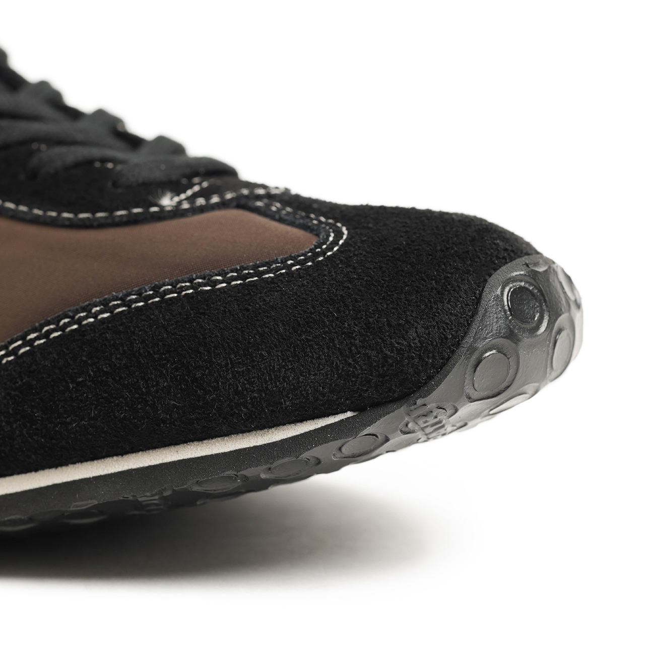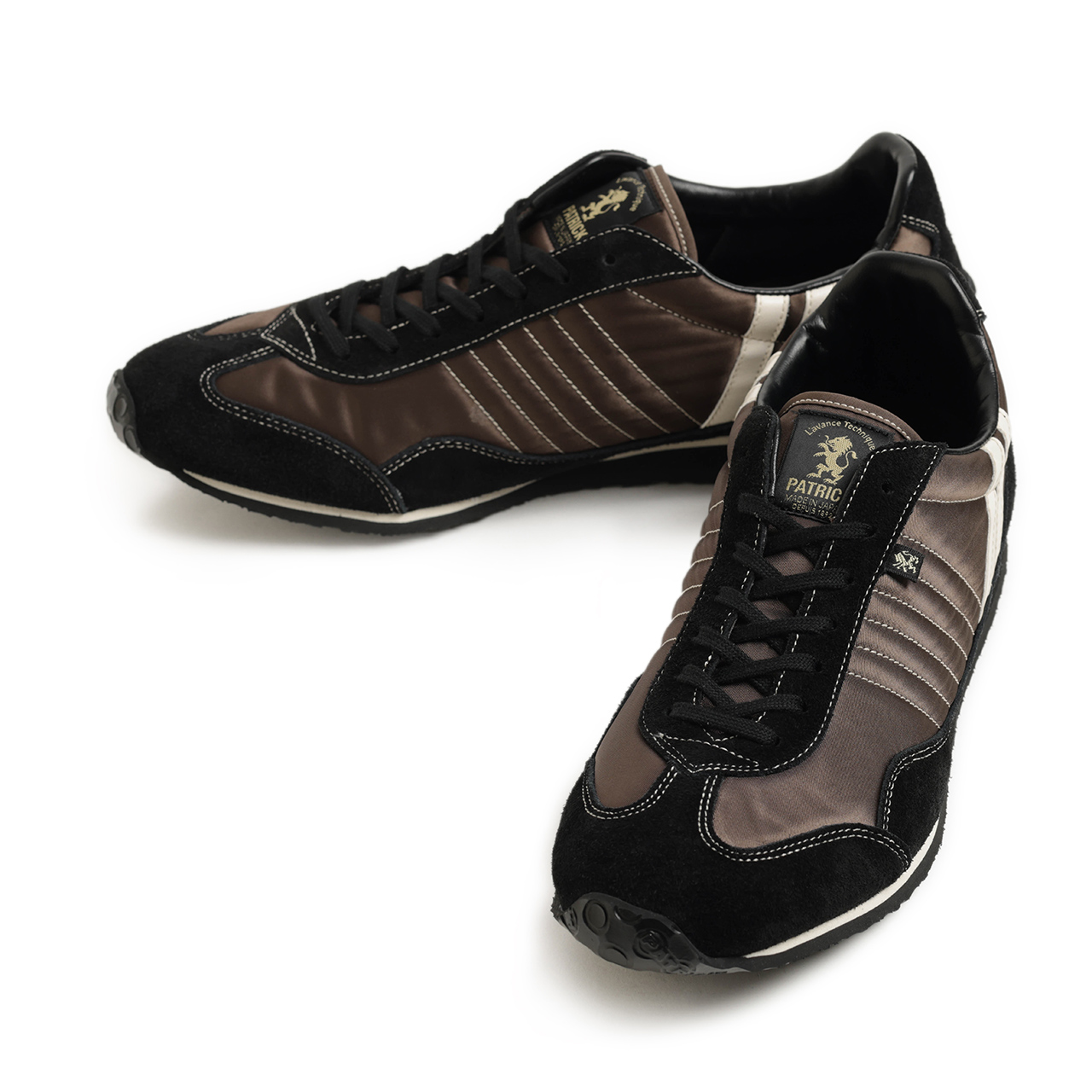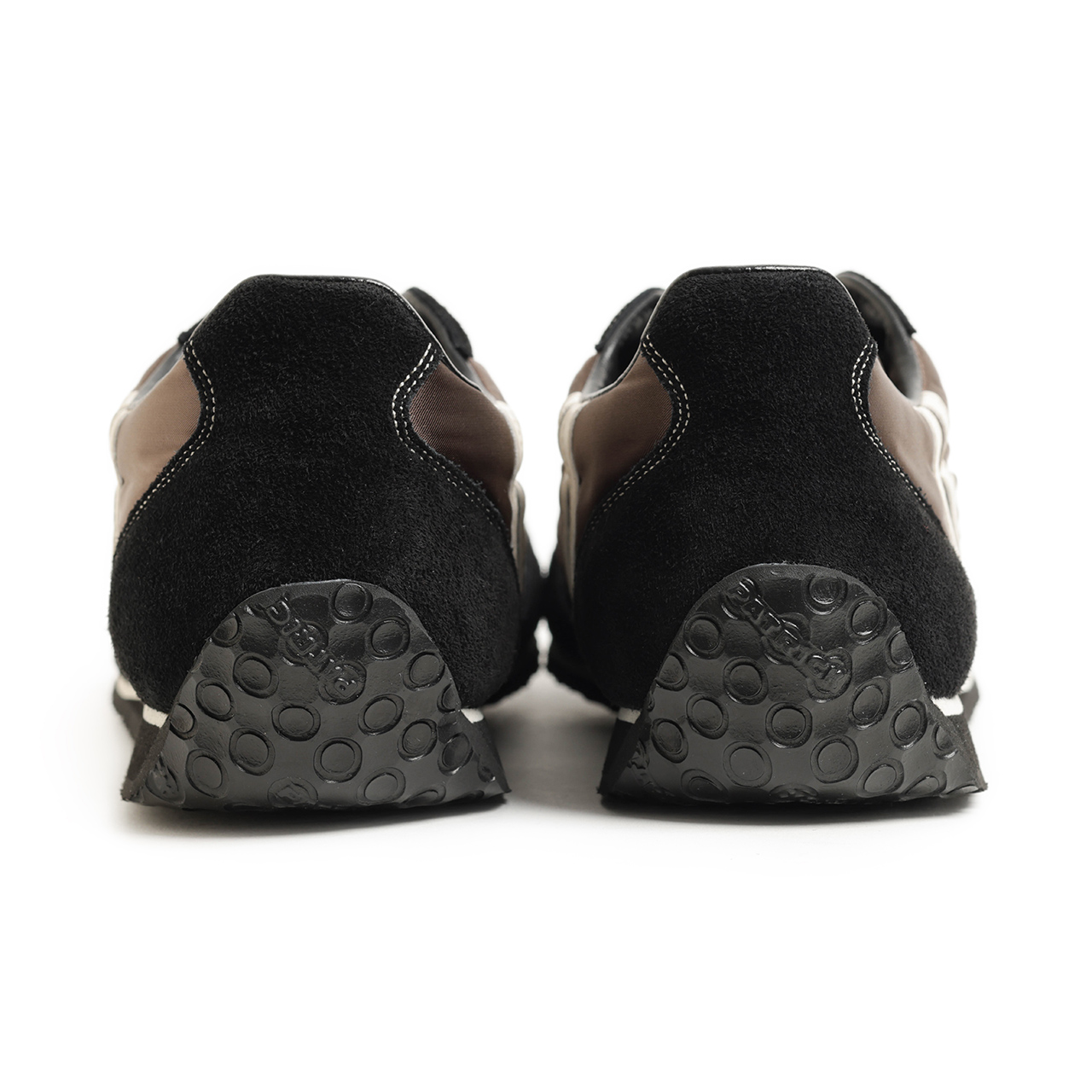 チャコールグレーのナイロンとブラックのスエードを組み合わせた良く焼かれたステーキを思わせるカラーリング。