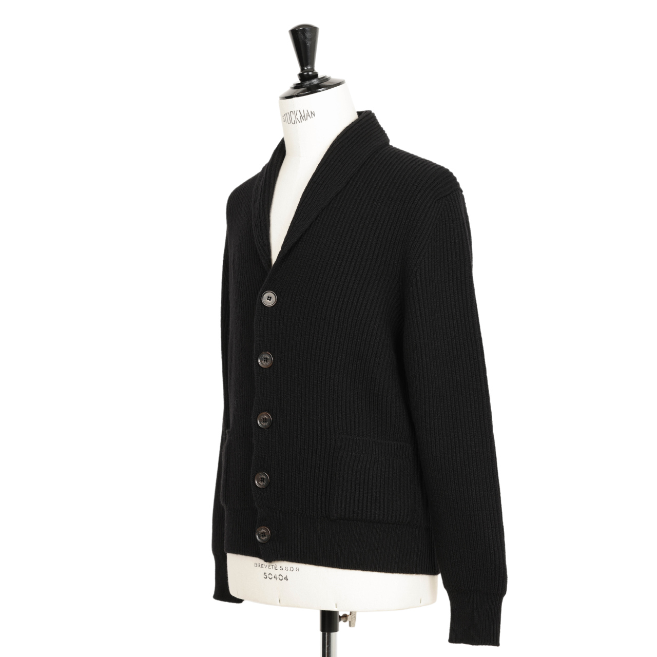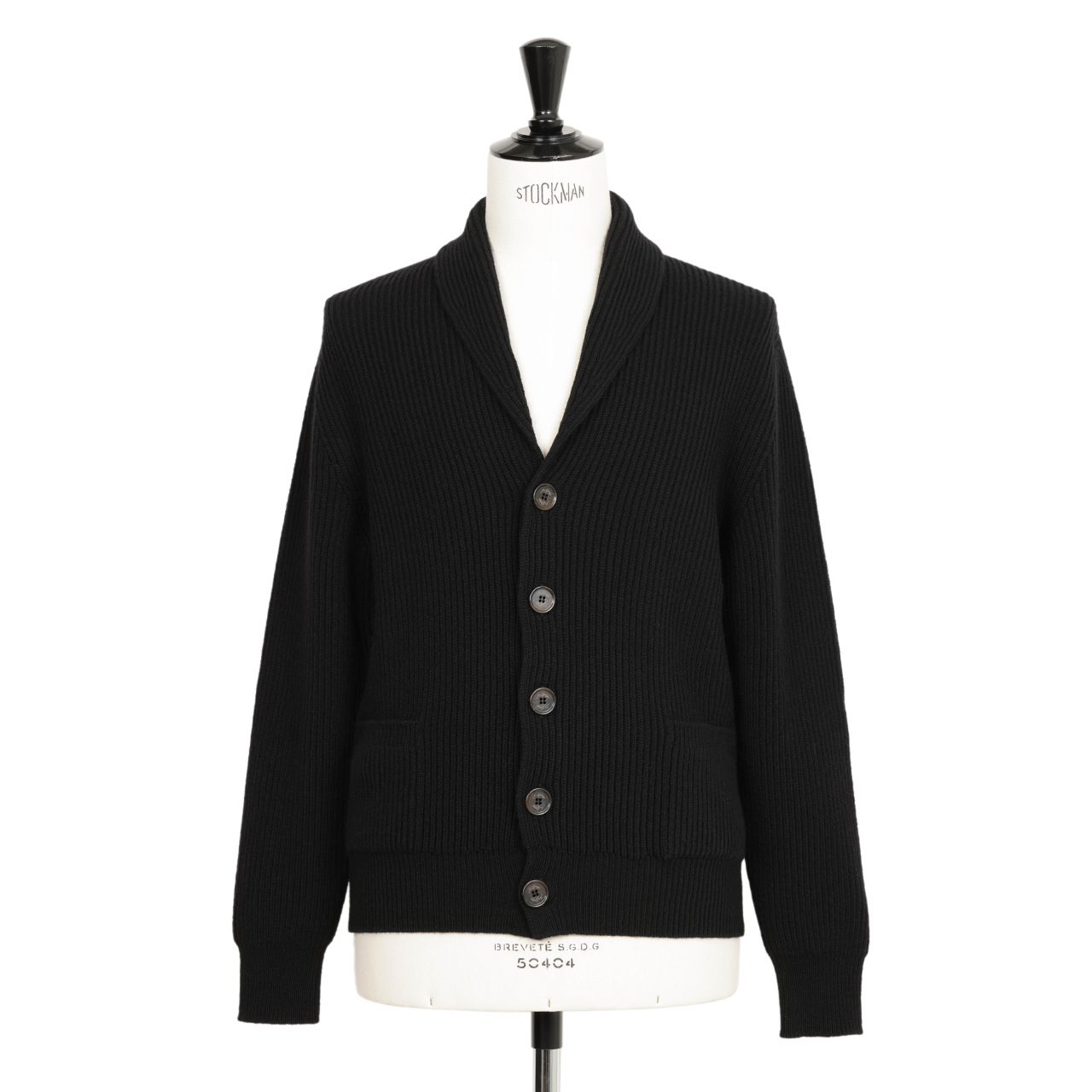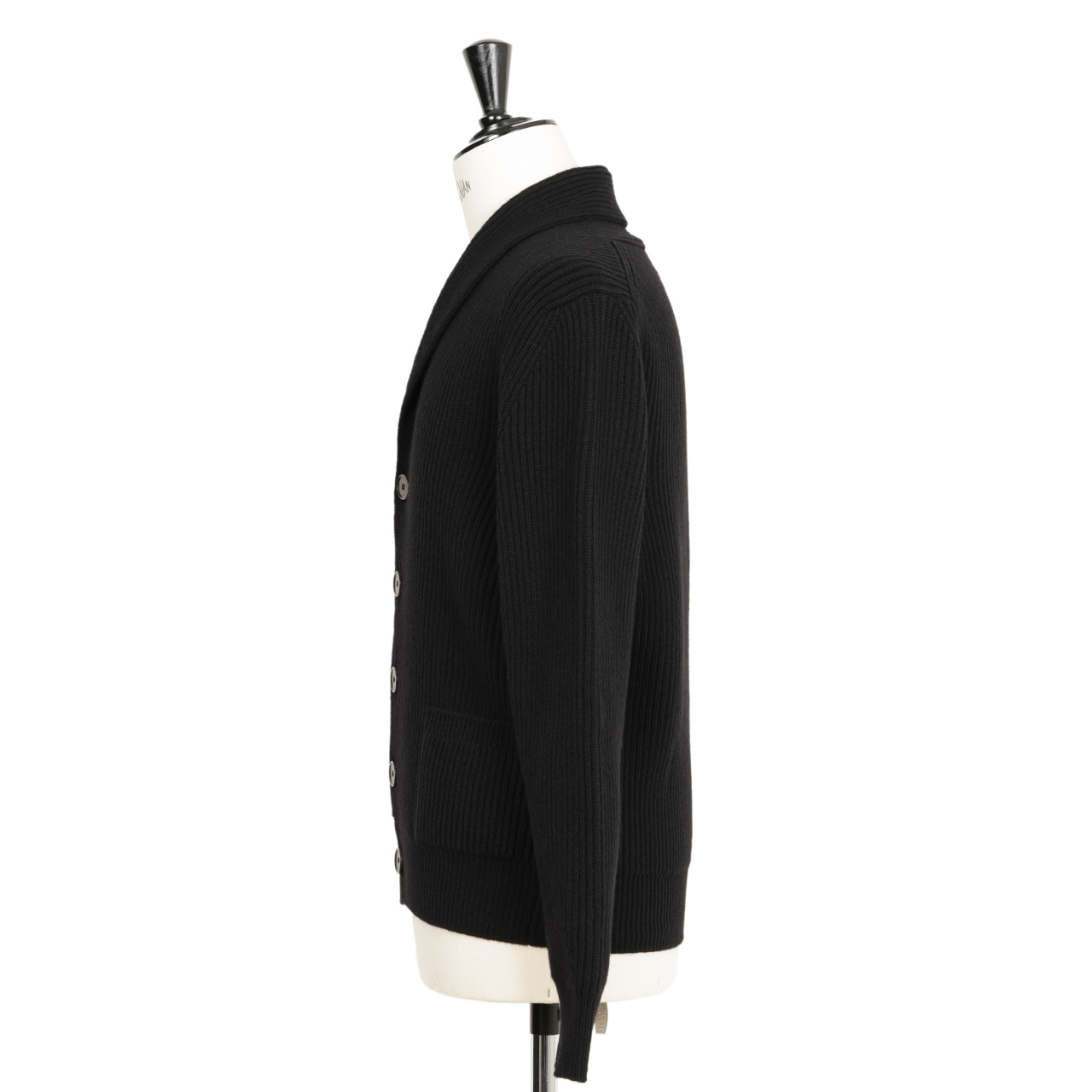 今季はこちらのショールカラーカーディガンをご用意しました。ショールカラーカーディガン自体は同ブランドの定番アイテムですが、こちらは7ゲージで編み立てた新型。