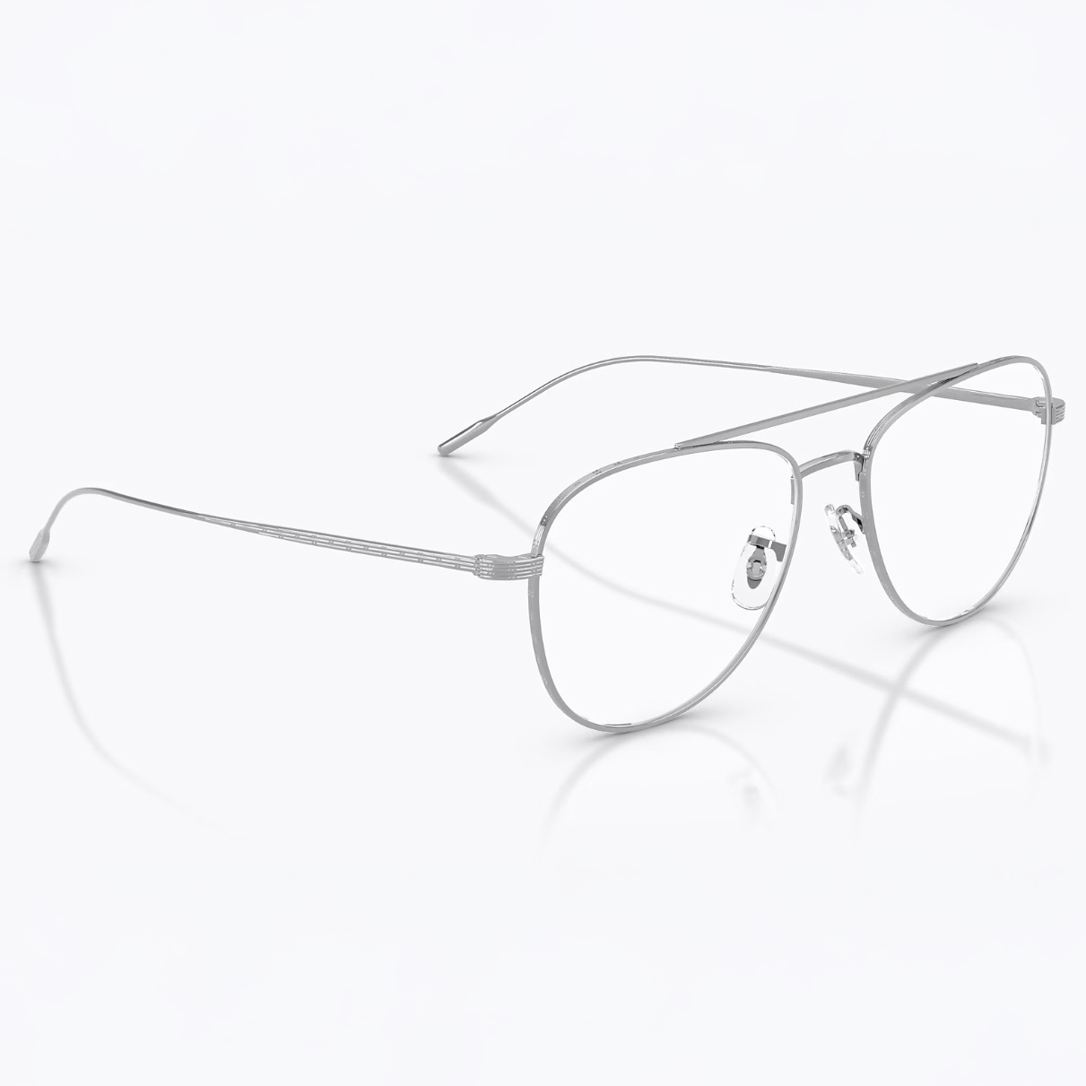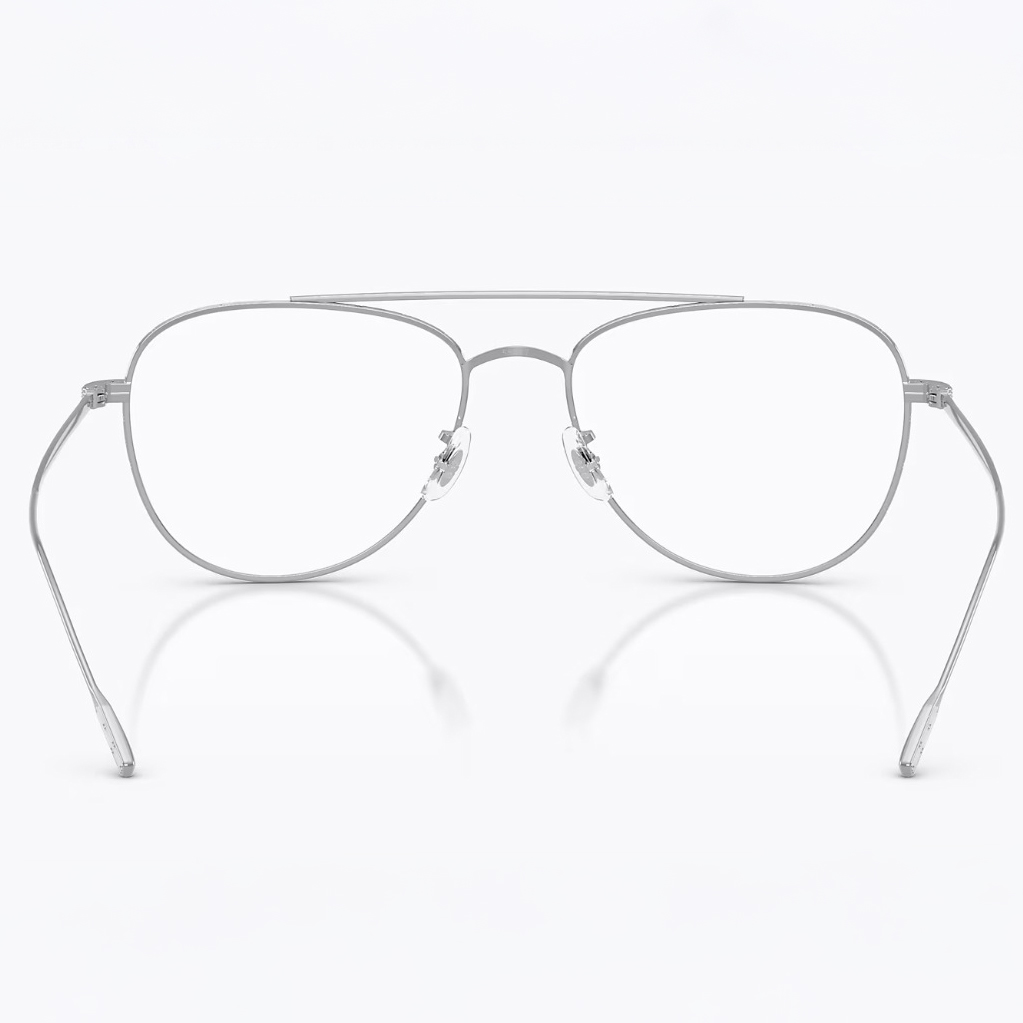 カラーはシルバー。洗練されたスマートな印象を与えるカラーです。クリアレンズでもカラーレンズでも収まる万能カラーとなっております。