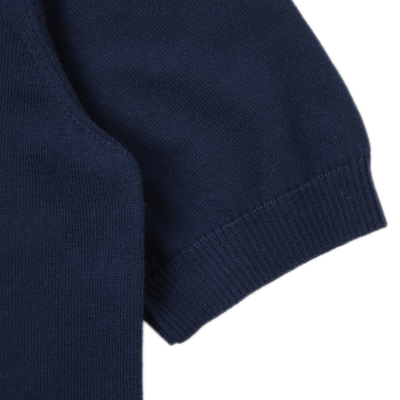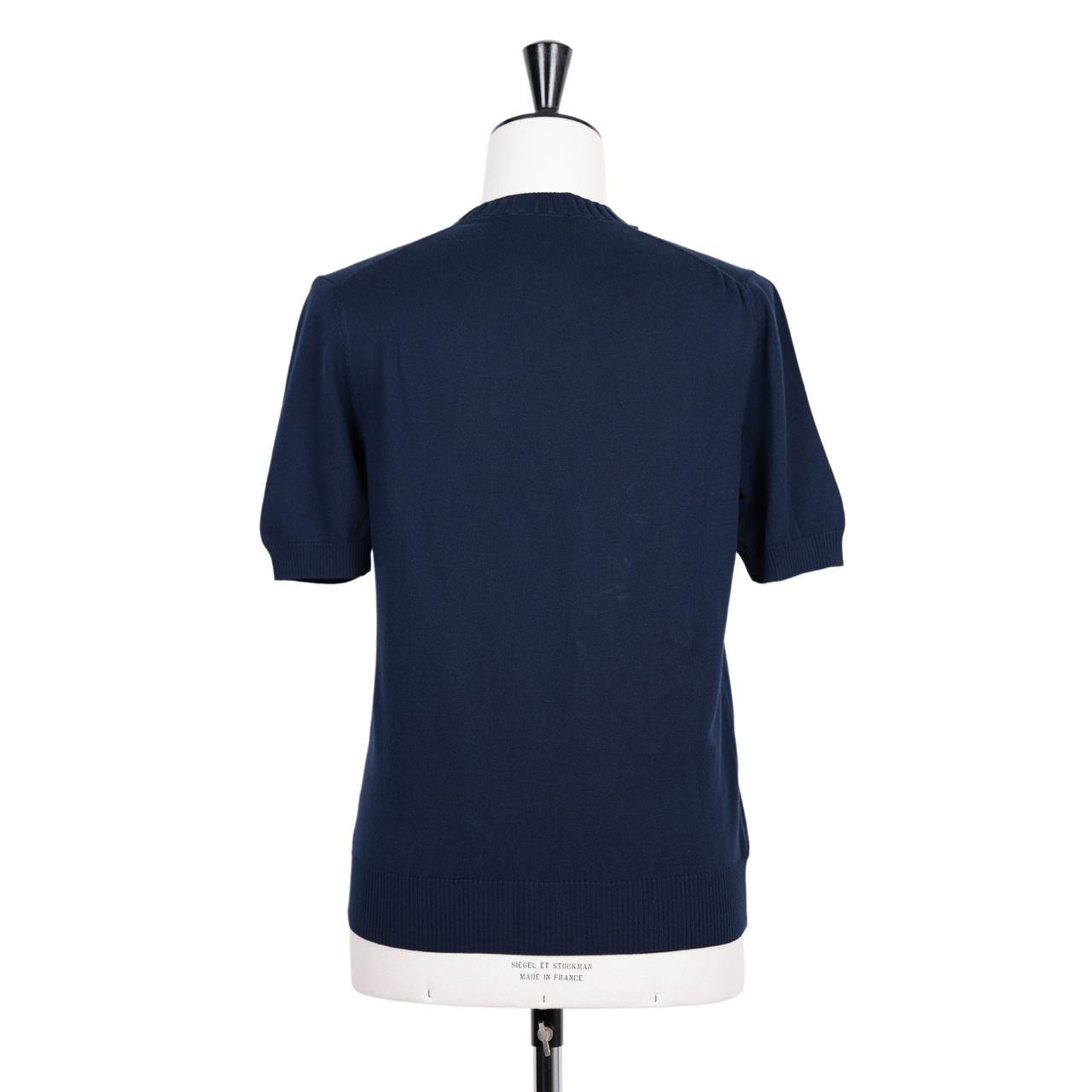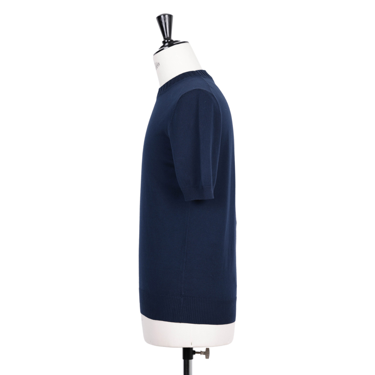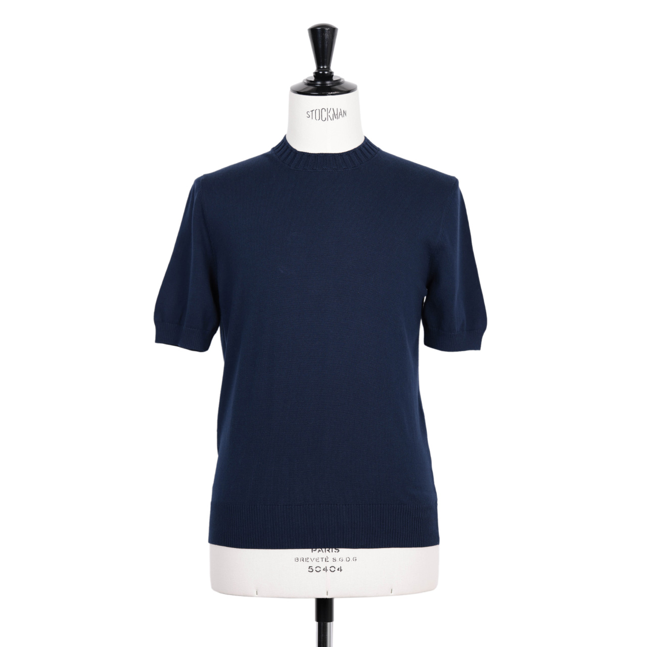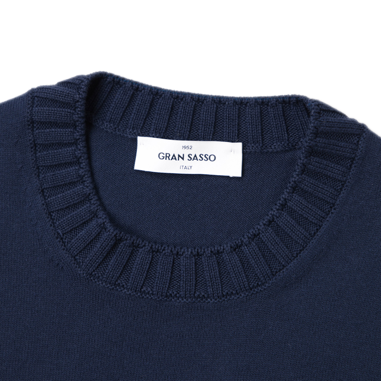 Gran Sasso グランサッソ ニット Tシャツ ハイゲージ コットン エジプト綿 クルーネック プルオーバー リブ 半袖 57188 18163 598/ネイビー