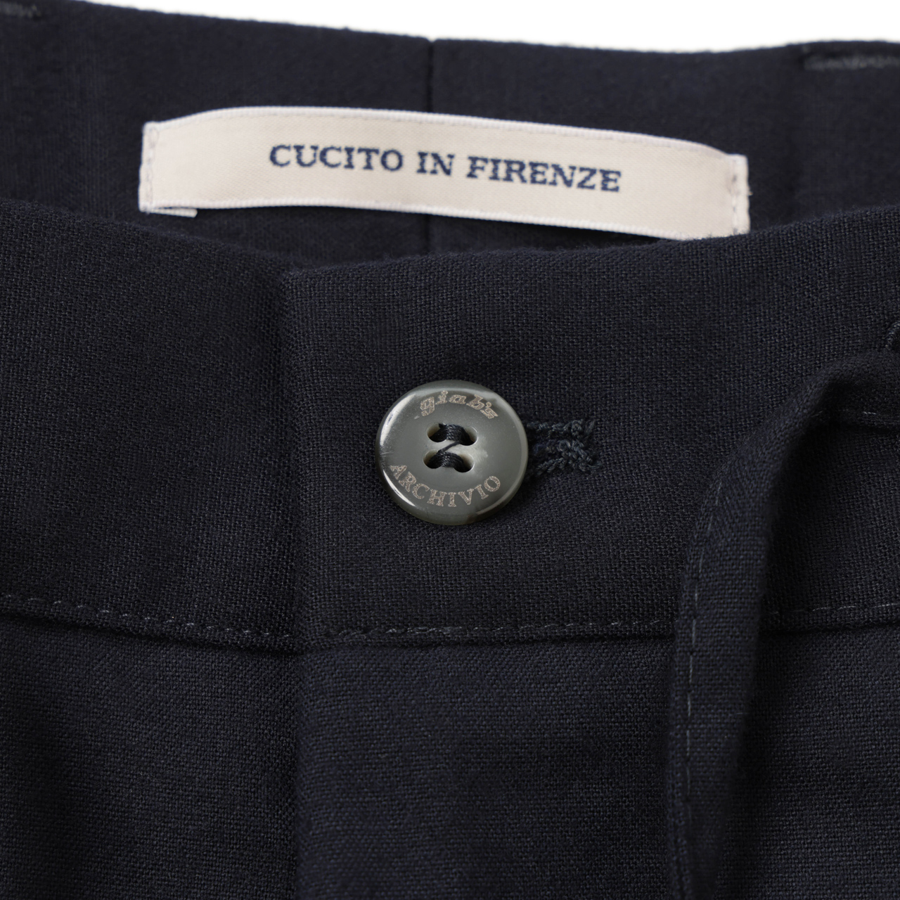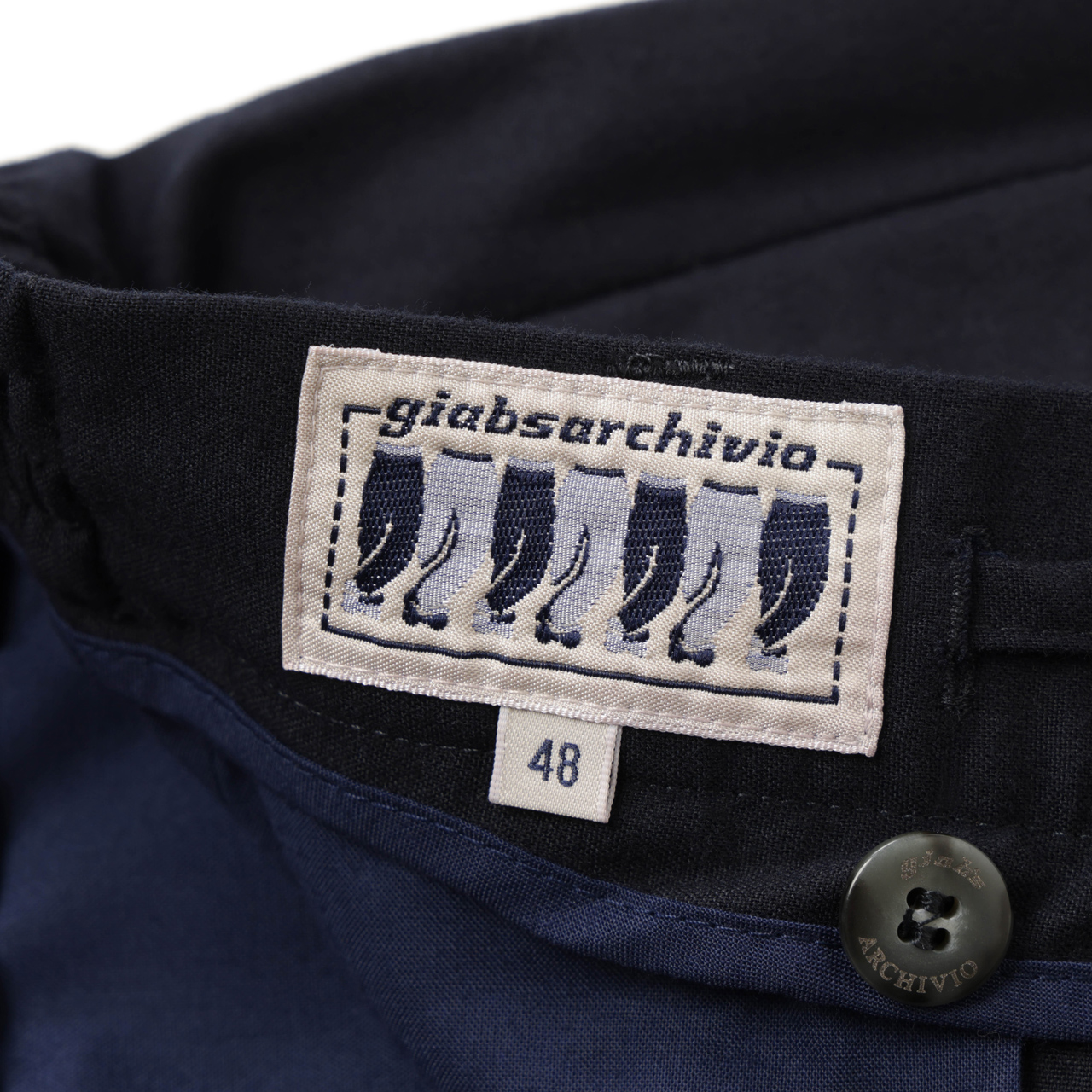 giabsarchivio(ジャブスアルキヴィオ)はGIAB’S(ジャブス)社の歴史的背景、トラウザーズ専業ファクトリーとして培ってきたノウハウを生かしイタリア・ミラノにてセレクトショップのバイヤーやイタリアンブランドのディレクションなど多方面で活躍中のミラノ在住の日本人、中新井 淳平氏のディレクションにより日本とイタリアの感性がミックスされたハイブリッドなトラウザーズコレクションを展開。