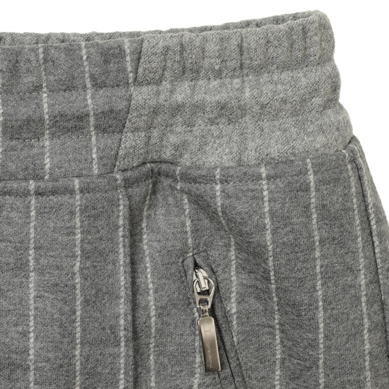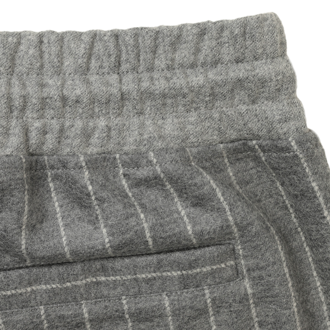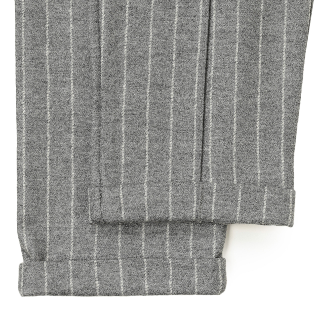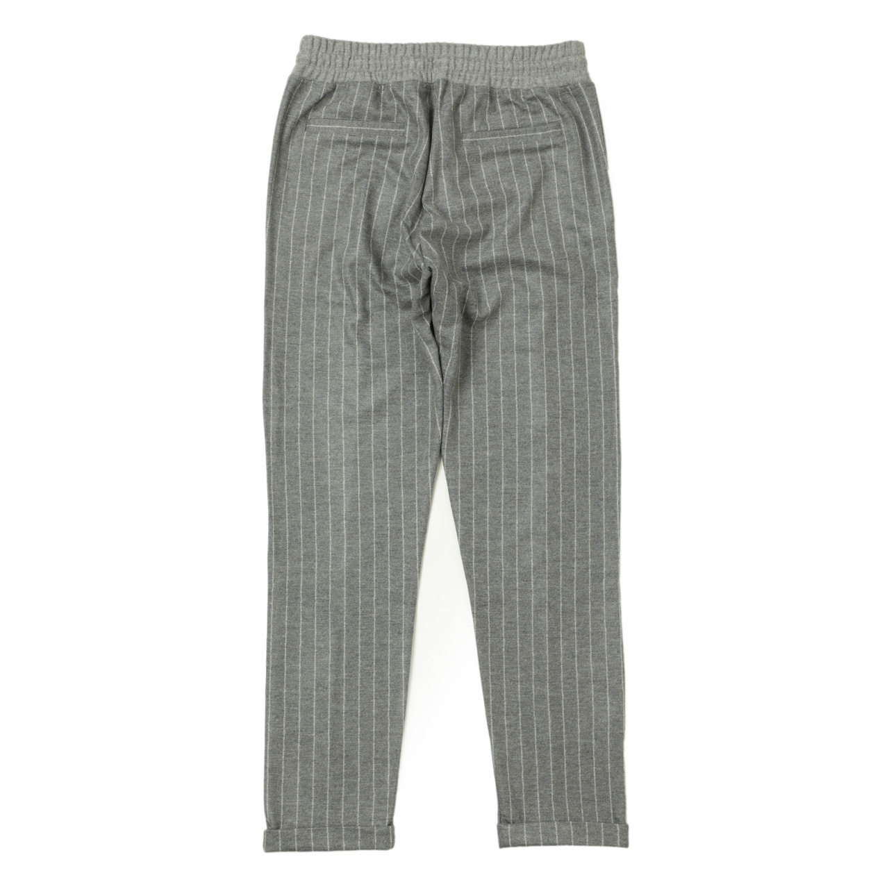 この手の生地では珍しいチョークストライプ柄を採用することでジャージ素材でありながら、裾のダブルの仕上げも相まってクラシカルな雰囲気も纏っています。