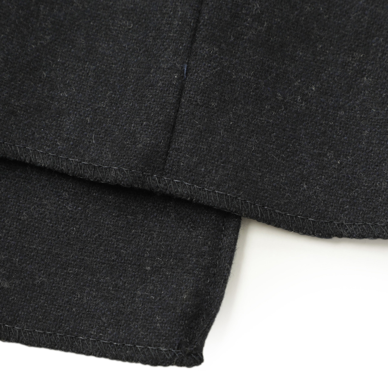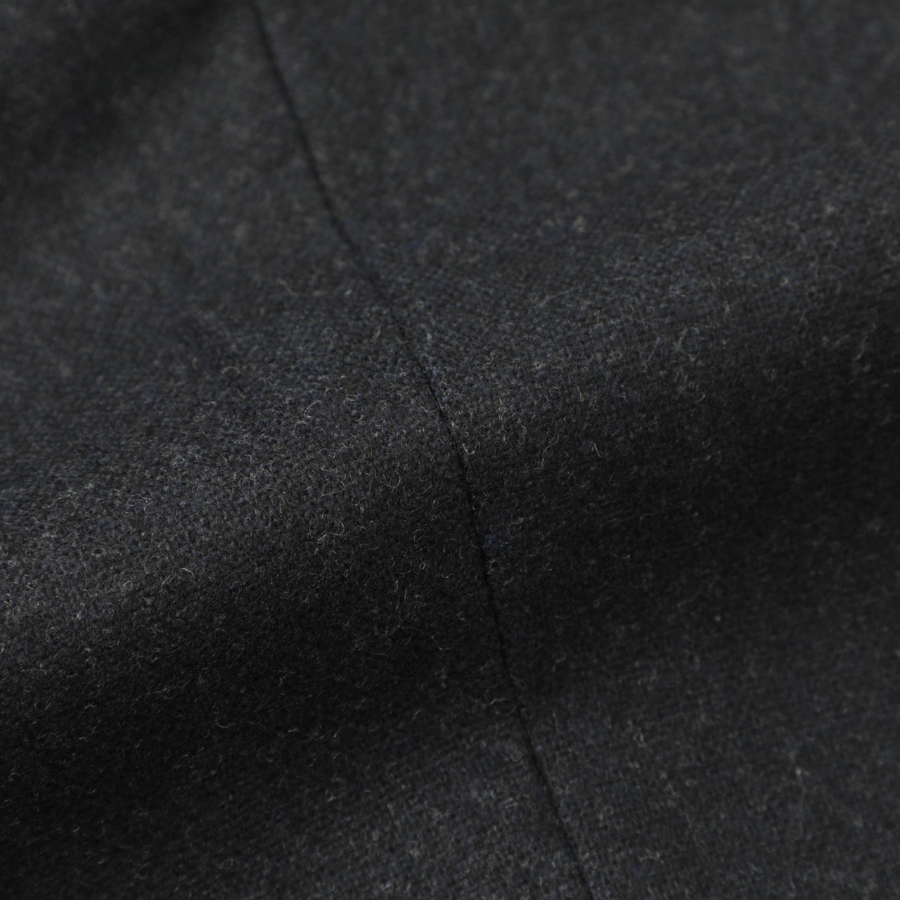 生地はインラインでもご用意したことがある、ウールをベースにポリエステルとストレッチ素材を混紡した生地。はっきりとした織地に、起毛感のある表情が特徴的です。