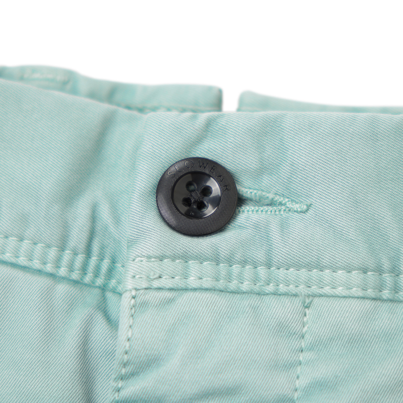 ディテールとしては、はいたときに折り目が真っ直ぐに落ちるようセンタークリース(折り目)を外側に向けて仕上げたり、ウエストにかかる負荷を分散させるためにウエストバンド後部を二つのパーツに分けV字のカットを入れたりと、細部への配慮はパンツ専業ブランドならではです。