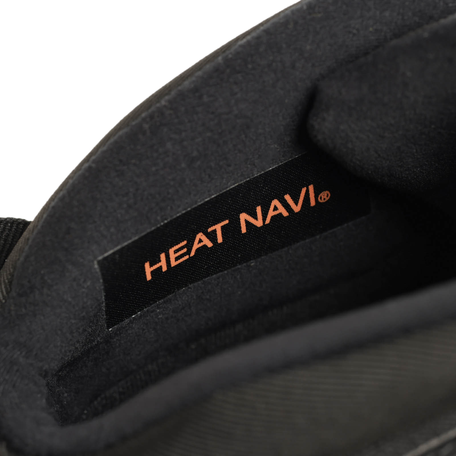 太陽光の赤外線を含むほぼすべての光の波長を熱に変換するデサント独自の蓄熱保温素材「HEAT NAVI」を内側の肌に接する面に採用。インソール表面には蓄熱素材の「ベルセラ」を使用することで防寒性を向上。